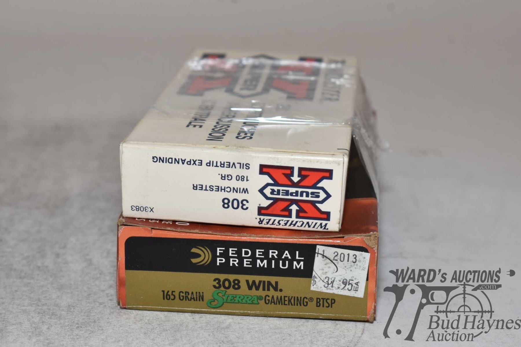 Two partial boxes of .308 win including one 15 count box of Federal 165 gr Gameking BTSP and an 18 c