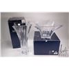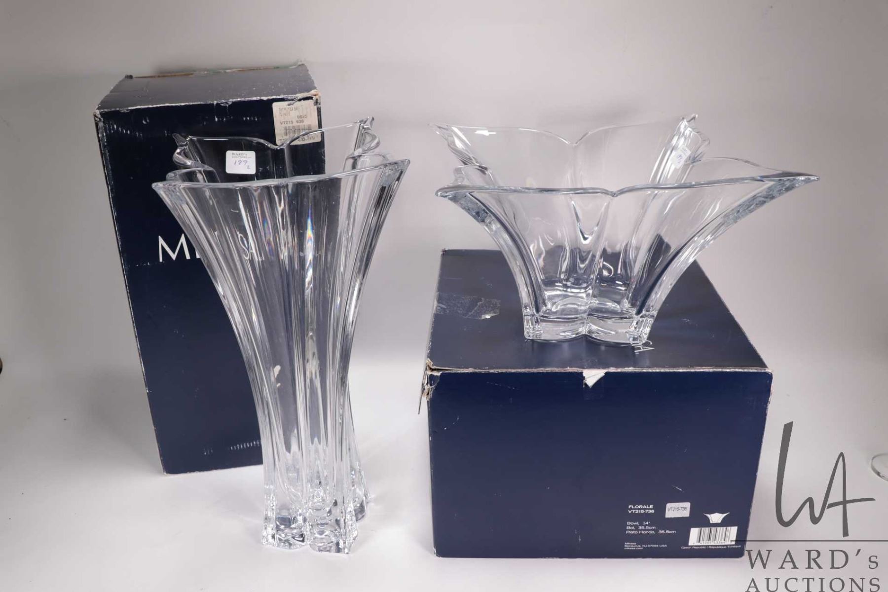 Two pieces of Mikasa glass including 14" vase and 10 1/2" square center bowl, both with original boxes