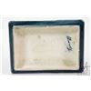 Two pieces of vintage Moorcroft pottery including 4 1/2" clematis vase and a columbine cigarrette box, note: slight chip on underside of rim