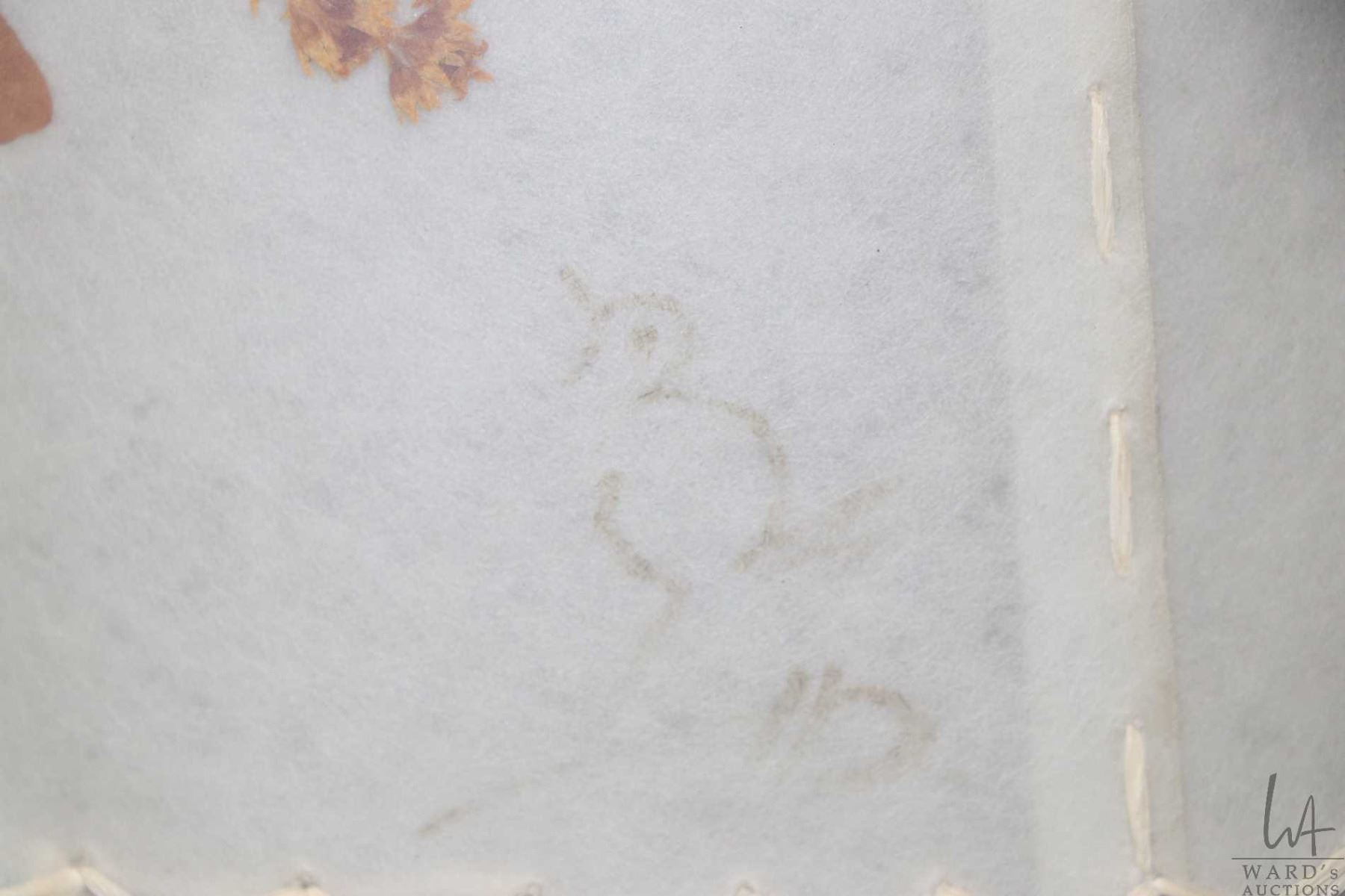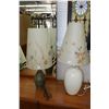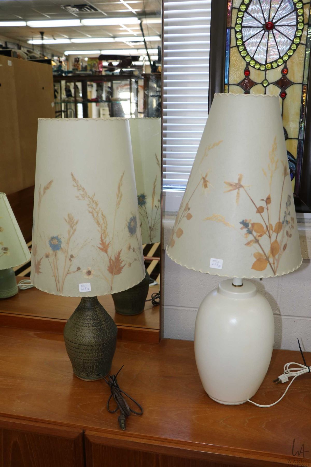 Two pottery lamps with artist made shades featuring encased dried foliage