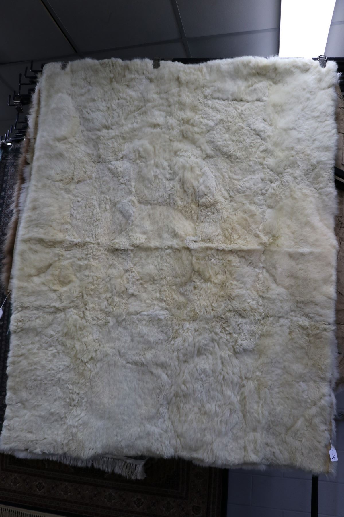 Two rectangular Alpaca skin rugs, both approximately 70  X 52