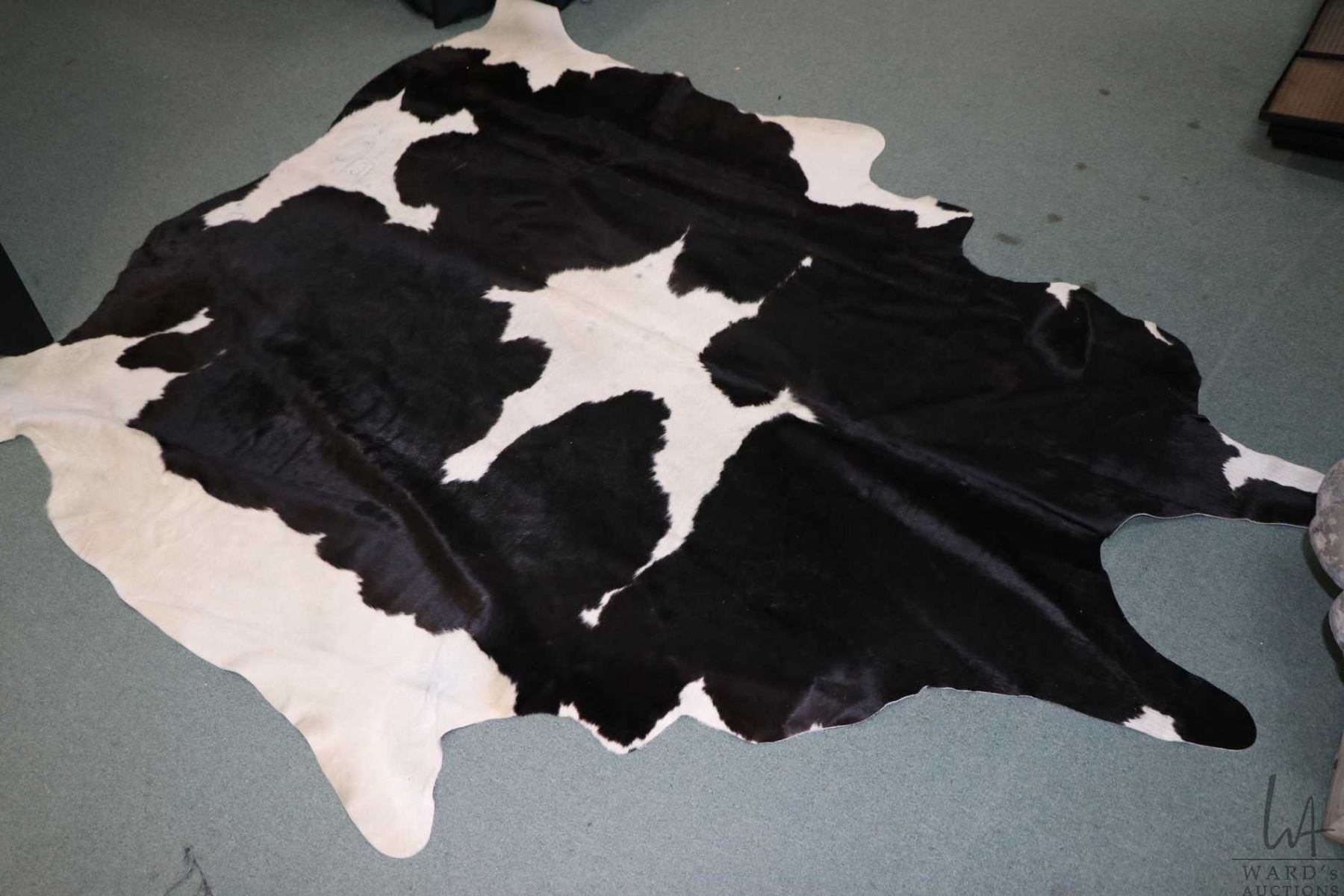Two skin rugs including a Woolmark Australian/ New Zealand dyed sheepskin and a Ikea "Kolbby" cow hide