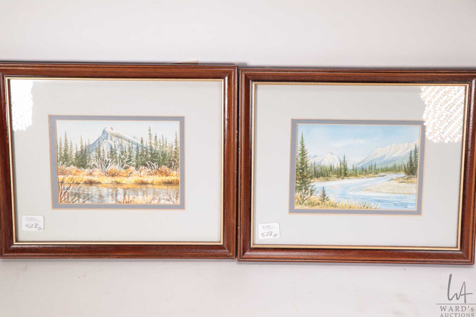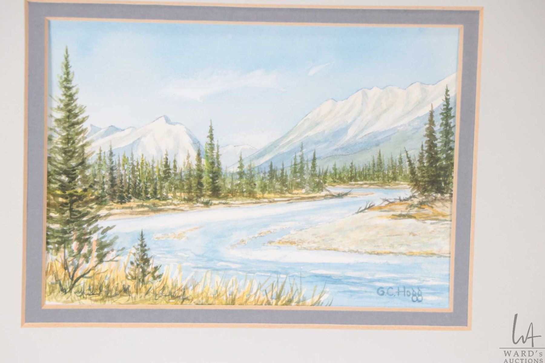 Two small original watercolour paintings including titled on verso "Mt. Rundle, Banff, Alberta" and "Kootenay River, Kootenay National Park British Columbia" signed by artist George C. Hogg and both 4" X 6"
