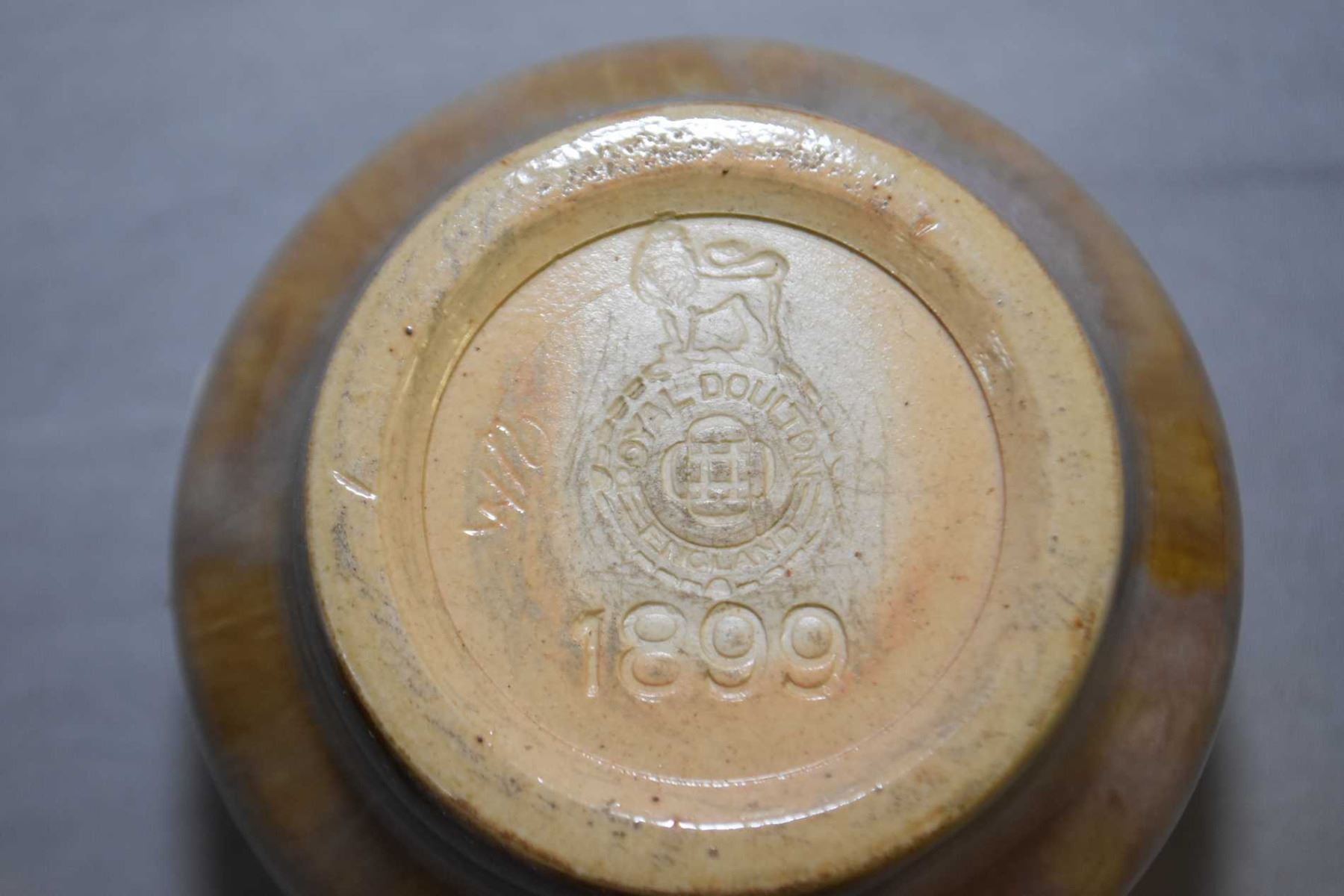 Two small pieces of Royal Doulton glazed stoneware including one marked 1899 and initialled W.A and a 31/2" dish marked A