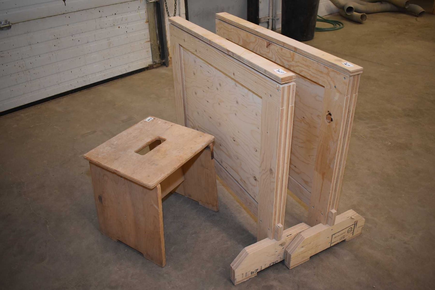 Two small saw horse and a small woodens stool - . (Update for March 27th. This item will be stored at the Ward's Auctions until it can be picked up. Go to www.wardsauctions.com for details)