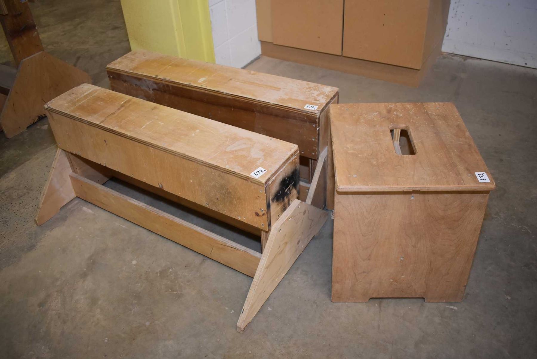 Two small saw horses and a small wooden stool - . (Update for March 27th. This item will be stored at the Ward's Auctions until it can be picked up. Go to www.wardsauctions.com for details)