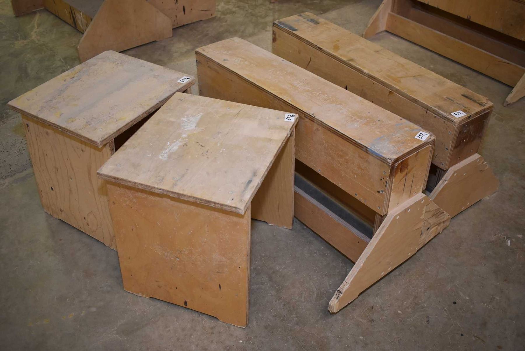 Two small saw horses and a small wooden stool - . (Update for March 27th. This item will be stored at the Ward's Auctions until it can be picked up. Go to www.wardsauctions.com for details)