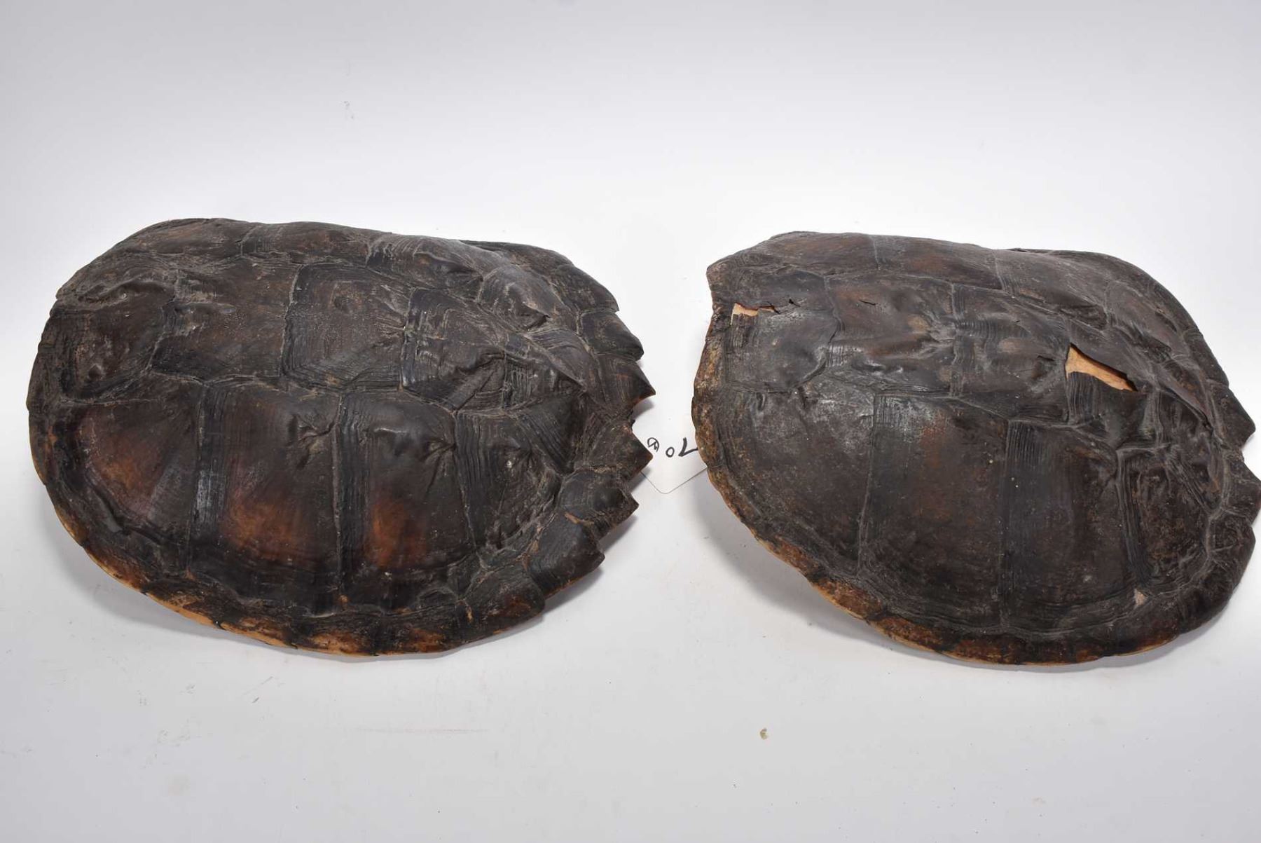 Two snapping turtle shells including an 11" and a 11 1/2"