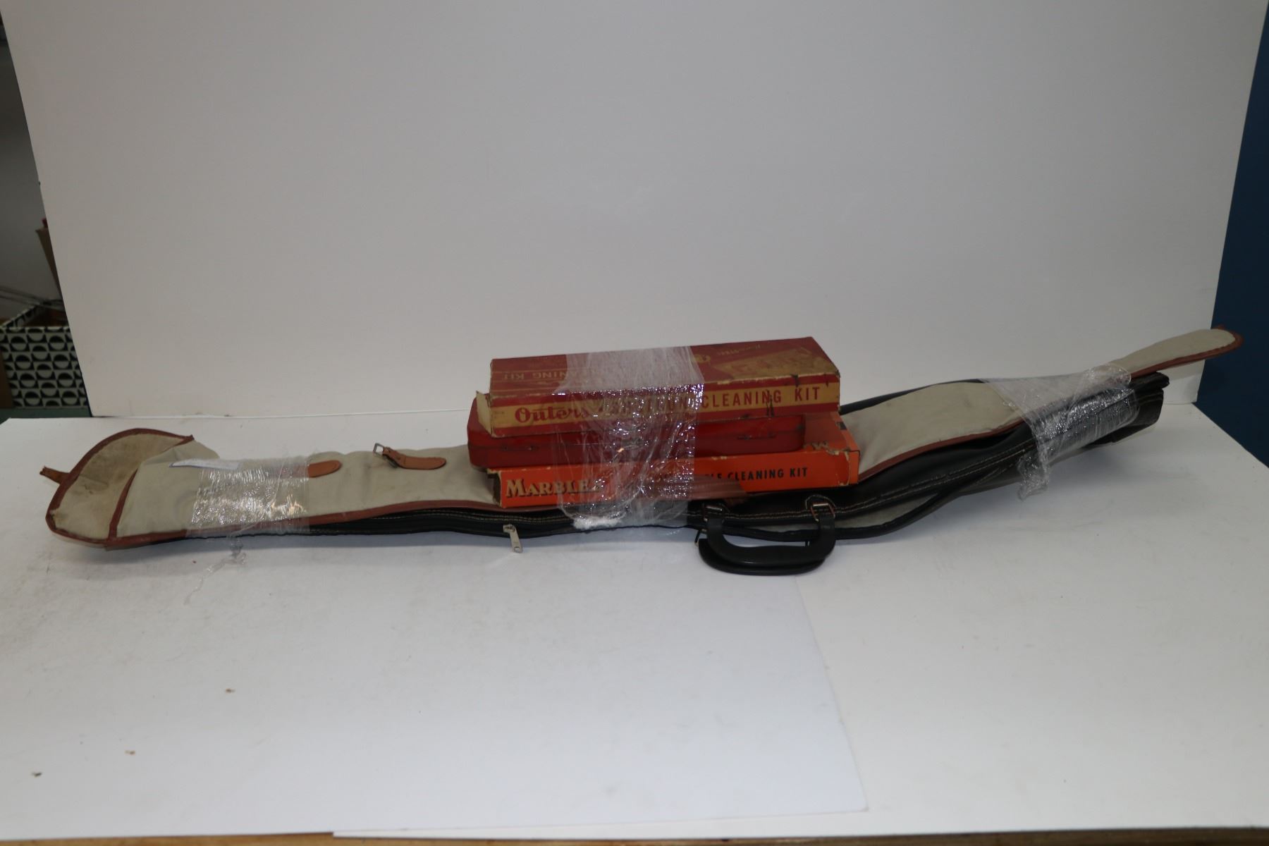 Two soft rifle cases and three cleaning kits including .22 CAL, shotgun and undesignated rifle cleaning kit