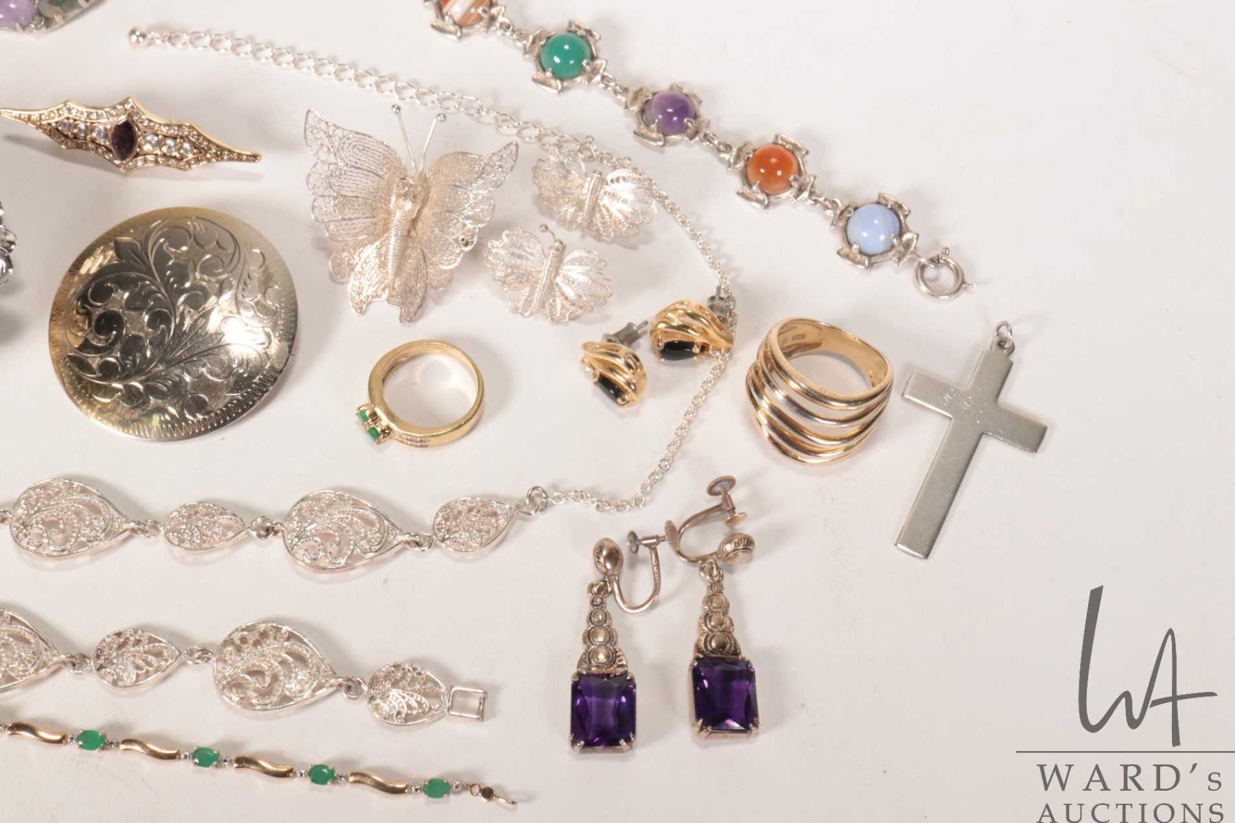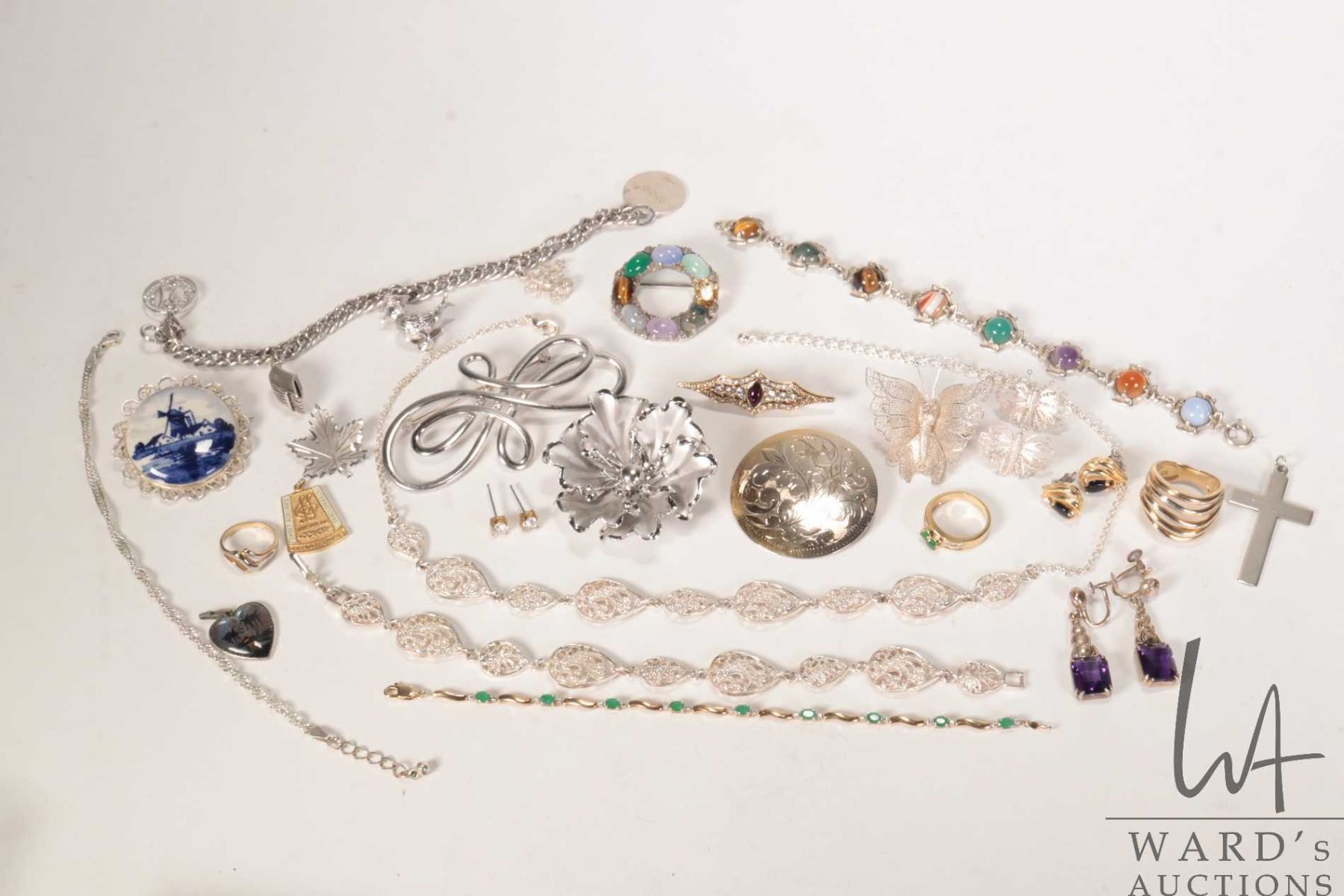 Two tray lots of vintage collectible jewellery including sterling silver, silver vermeil, necklaces,