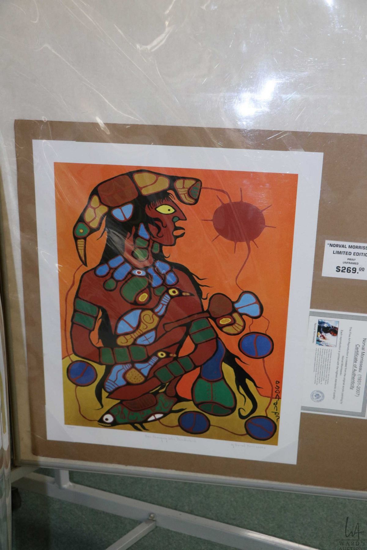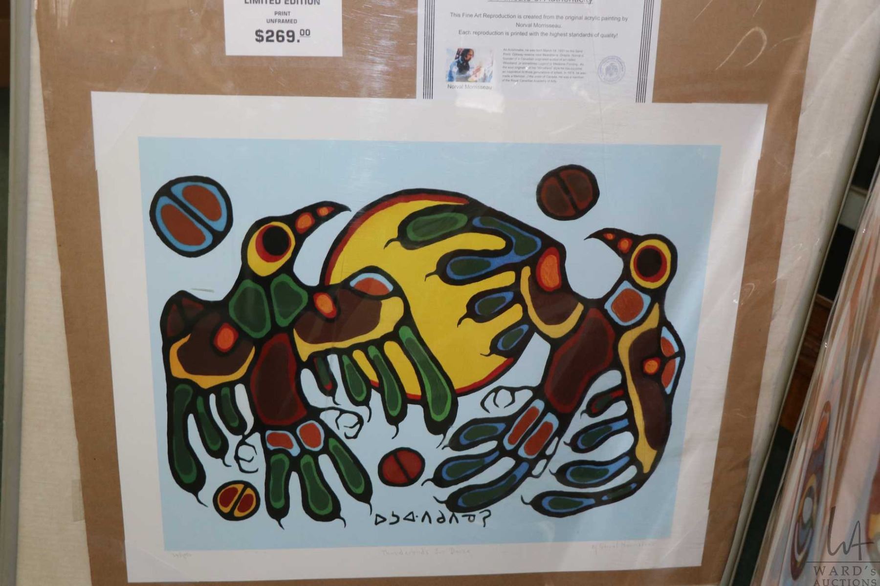 Two unframed limited edition Norval Morriseau prints including "Thunderbird's Sundance" 343/950 and "Man Changing into Thunderbird" 396/950