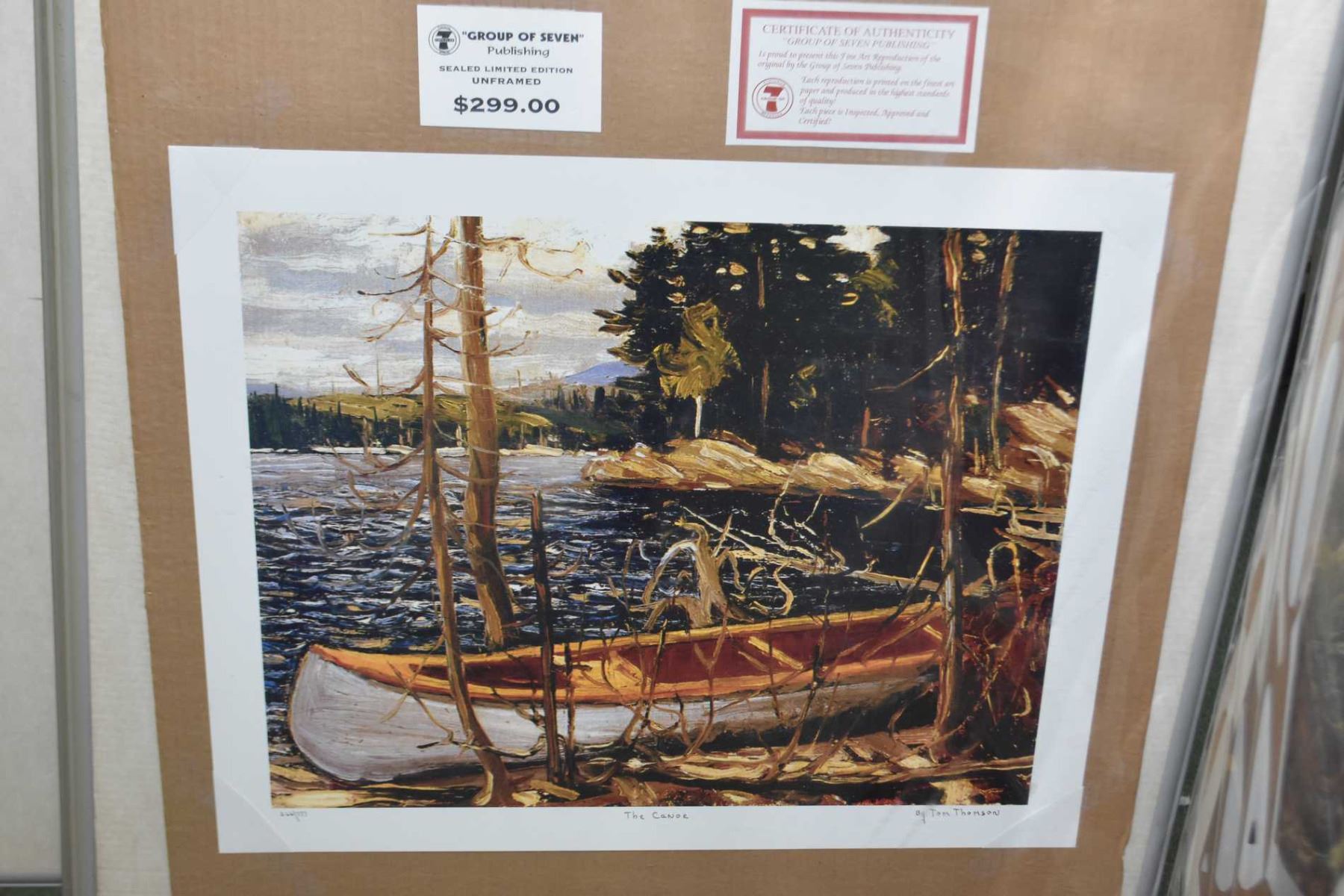 Two unframed limited edition prints Group of Seven including "Autumn" by Franklin Carmichael 631/777 and "The Canoe" by Tom Thomson 366/777