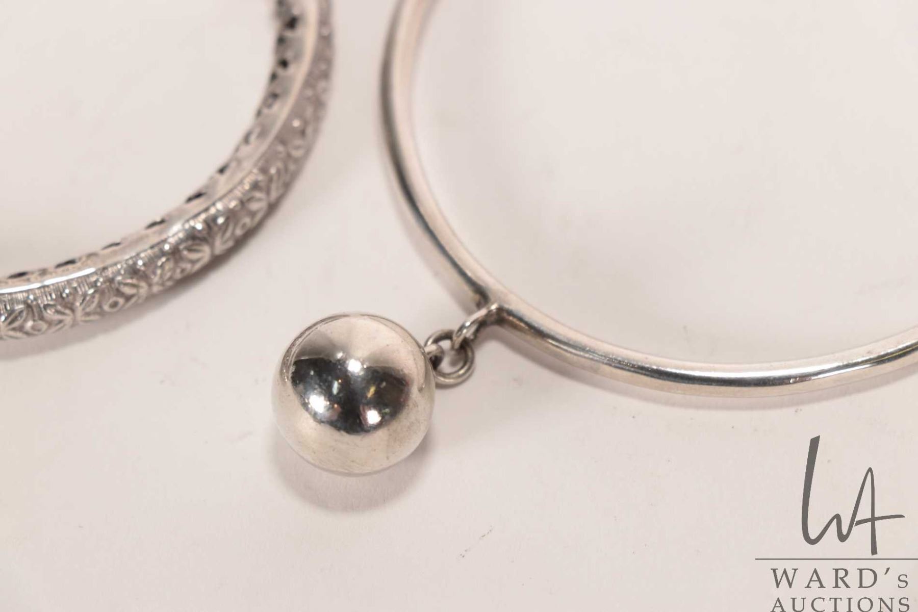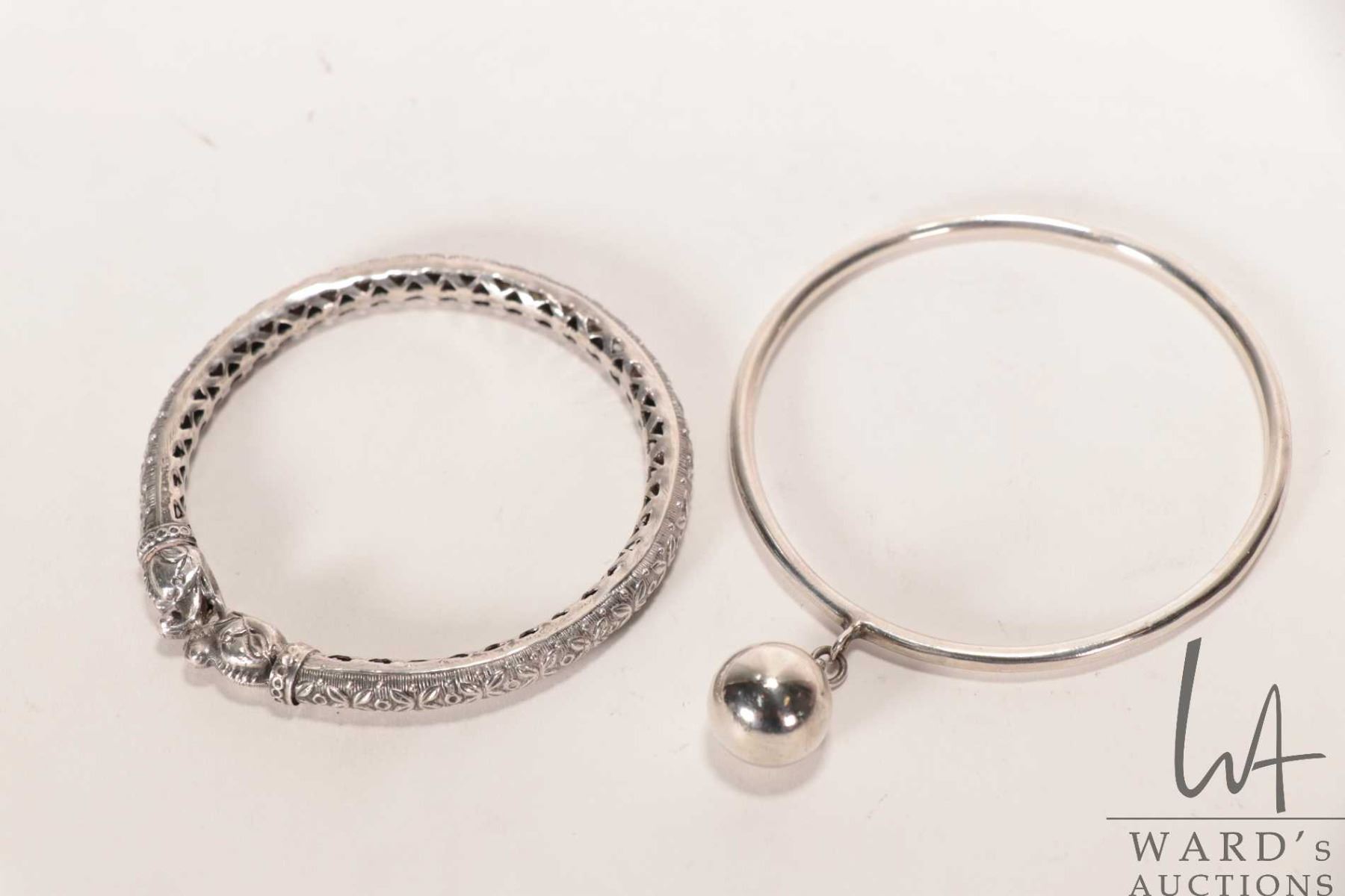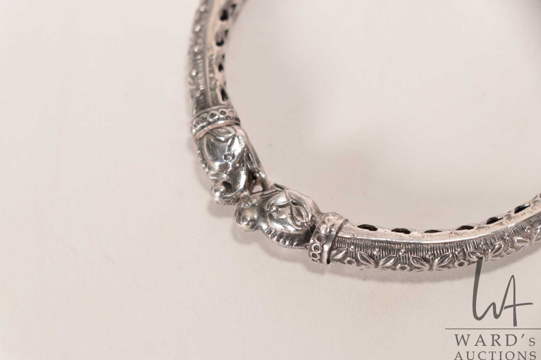 Two unmarked silver bracelets including Indian pierced bangle with double elephant heads