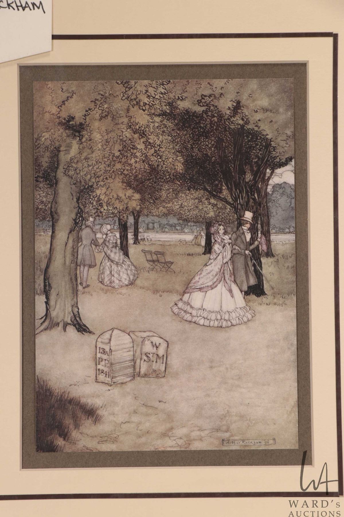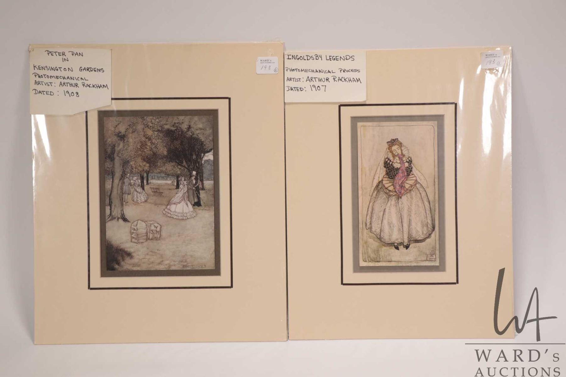 Two vintage Arthur Rackham prints including Peter Pan at Kensington Gardens and Ingolds by Legends, each mat frame and each 13" X 11" outside dimensions