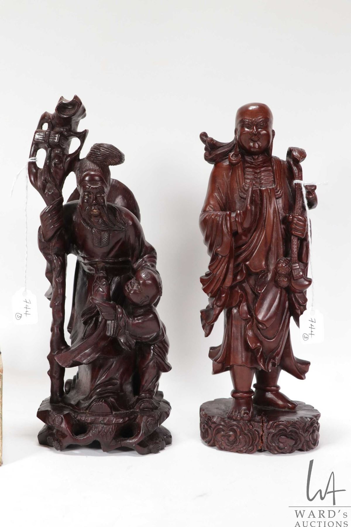 Two vintage Chinese rosewood, hand carved figures including a scholar and a diety, both approximatel