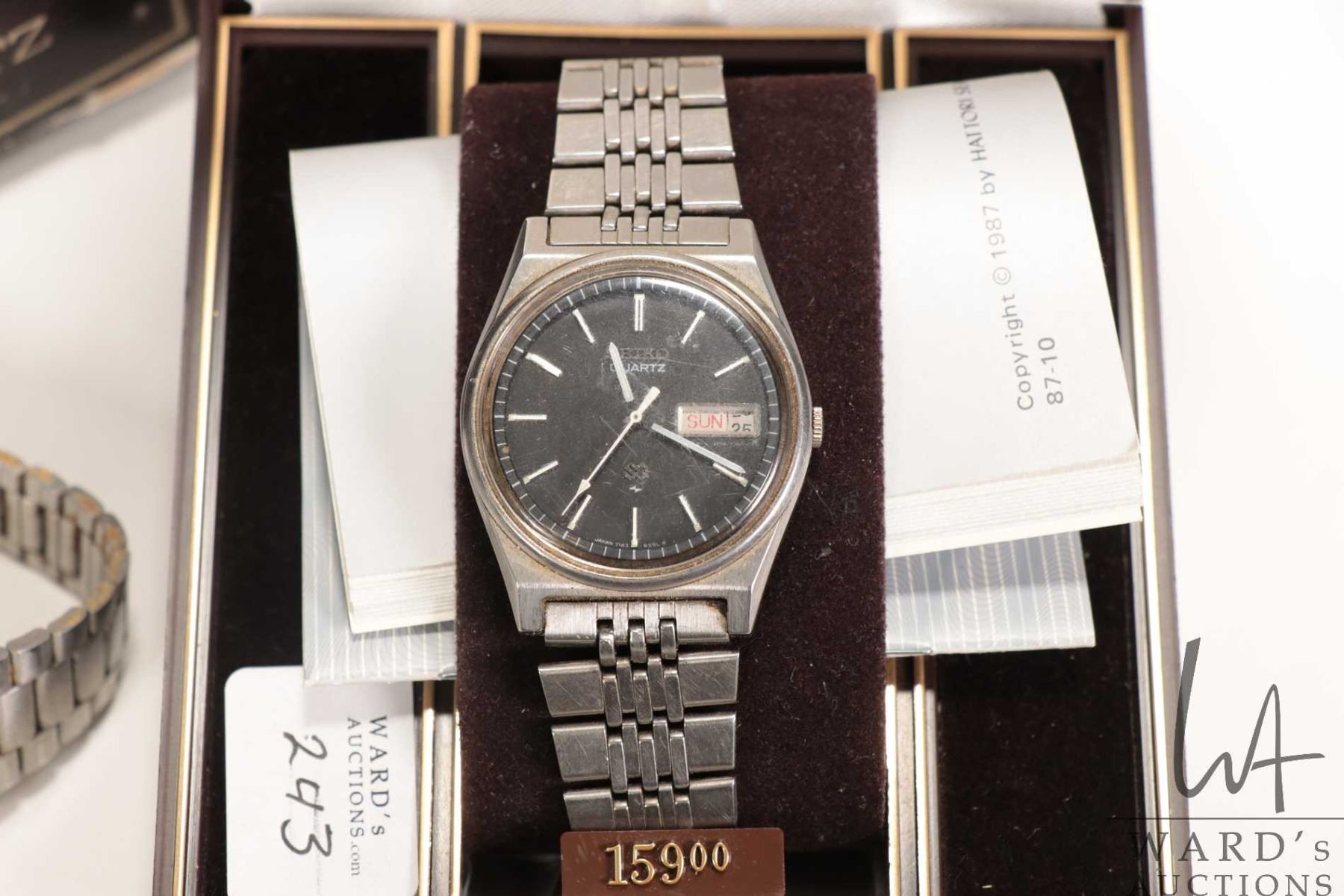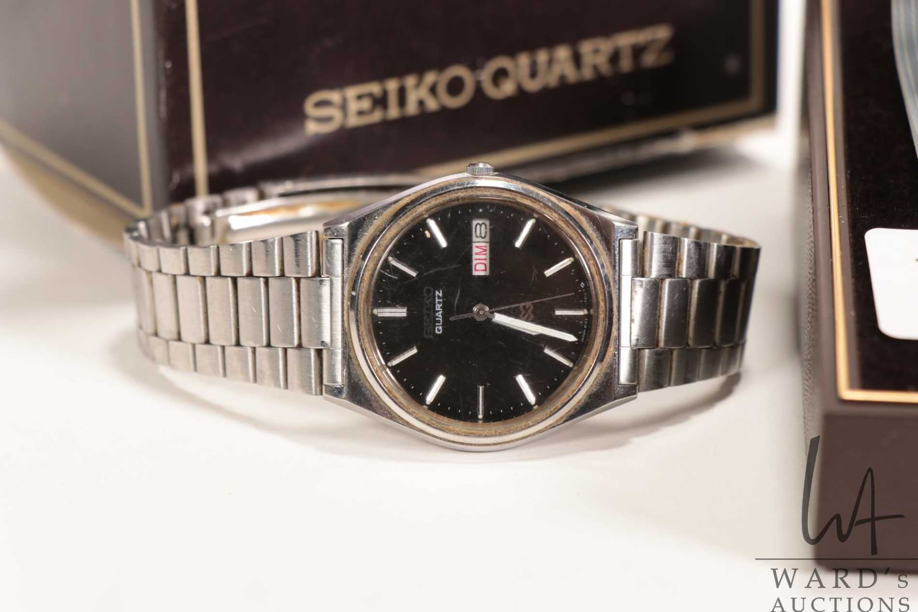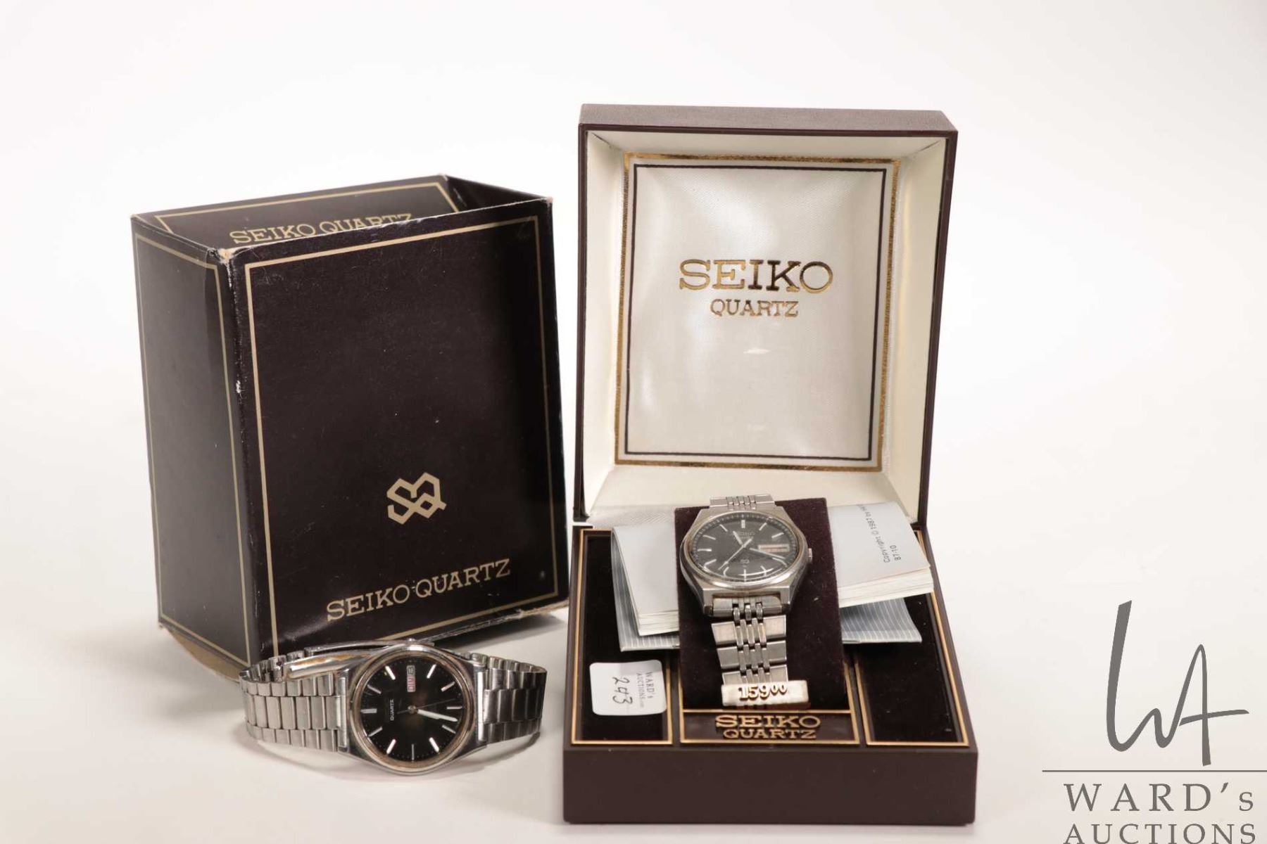 Two vintage Seiko wrist watches with quartz movement, one with original retail case and box