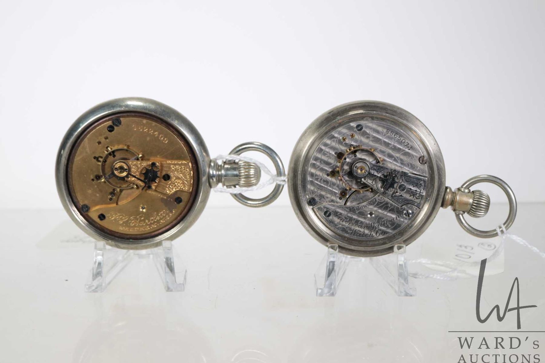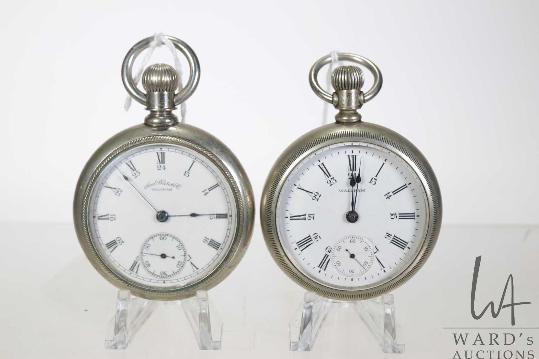 Two vintage Waltham pocket watches including Grade P.S. Bartlett, model 1883, 15 jewel pocket watch. Serial no. 3522409. White single sunk 24 hour dial with second sweep, Roman and Arabic numerals. In silveroid open face case. Working at time of cataloguing. Plus a Waltham, 15 jewel pocket watch in Fahys Oresilver case, size 18. Not working at time of cataloguing