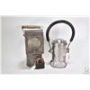 Two vintage/antique lanterns including kerosene lamp with reflector and a battery operated Conger Lantern Co. lamp plus a CNR lock