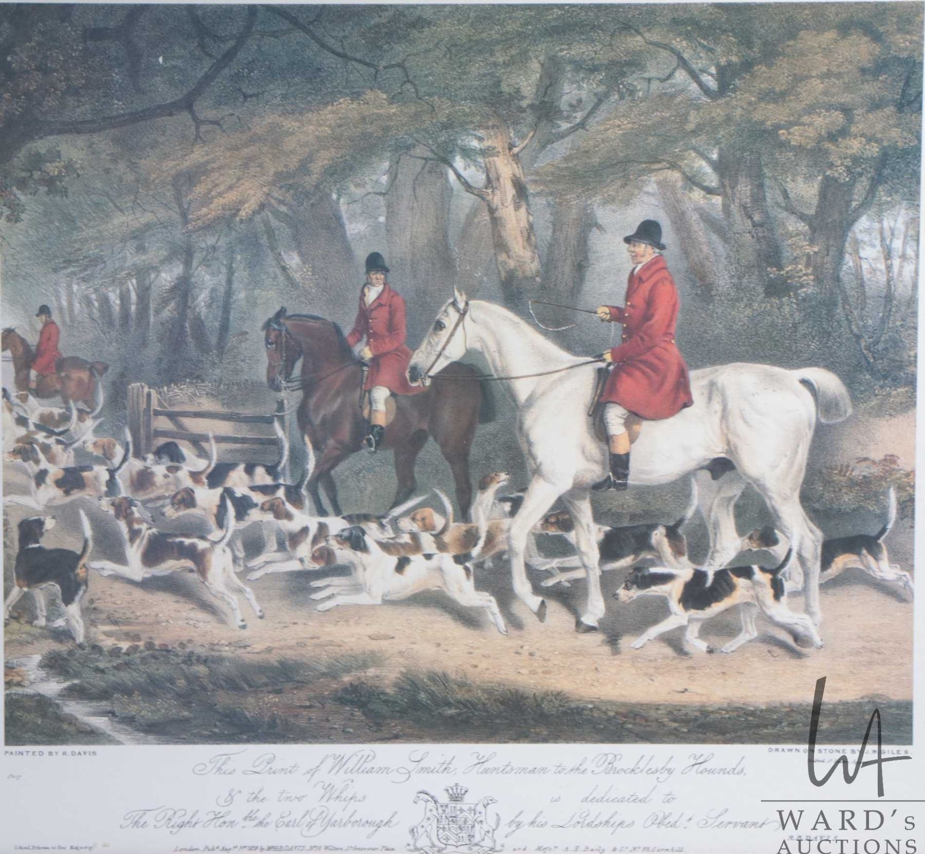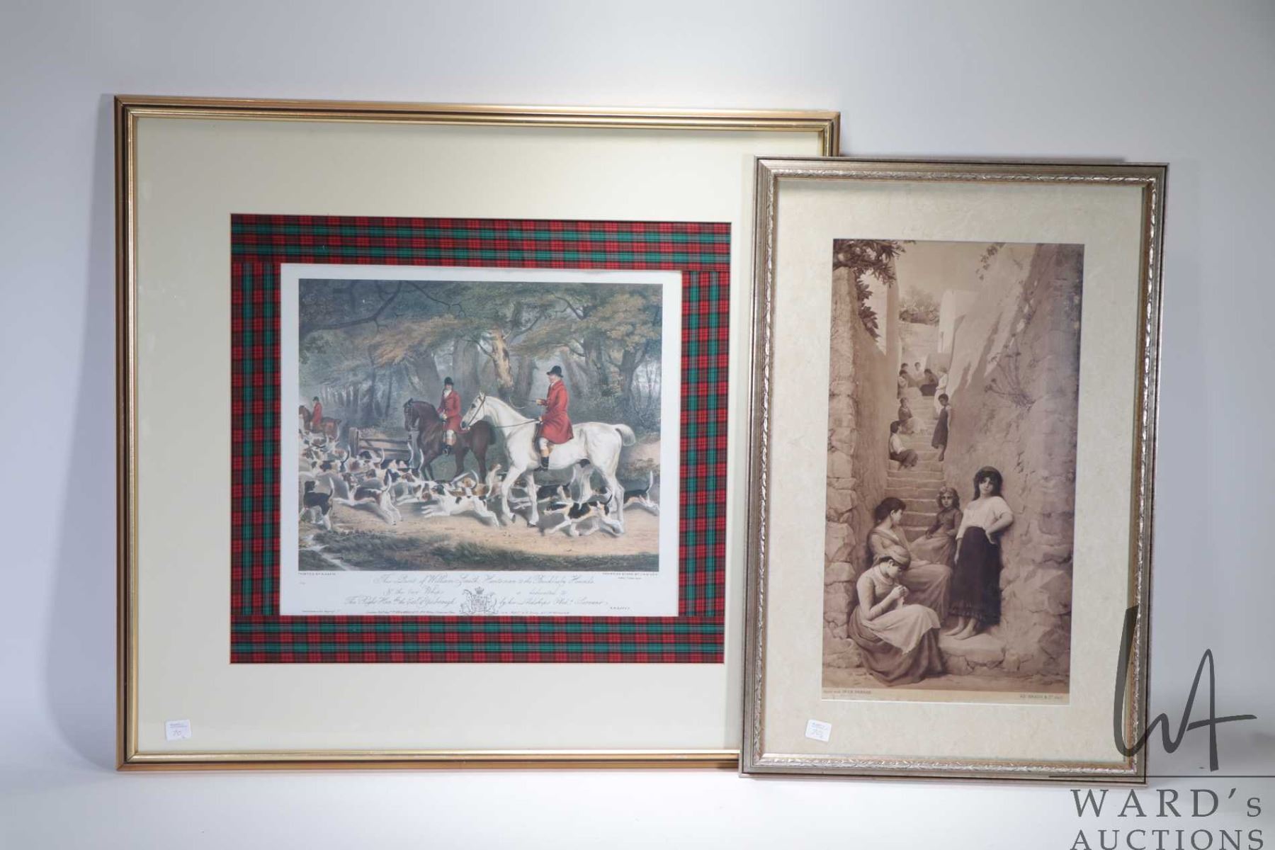 Two vintage framed prints including " A Corner of Shade in Capri" by Swiss-French artist Jean Benner and a print of a painting by J.W. Giles and R.B. Davis "The Print of William Smith, Huntsman to the Brockley House and the two whips" presented to Earl of Yarborough circa 1839