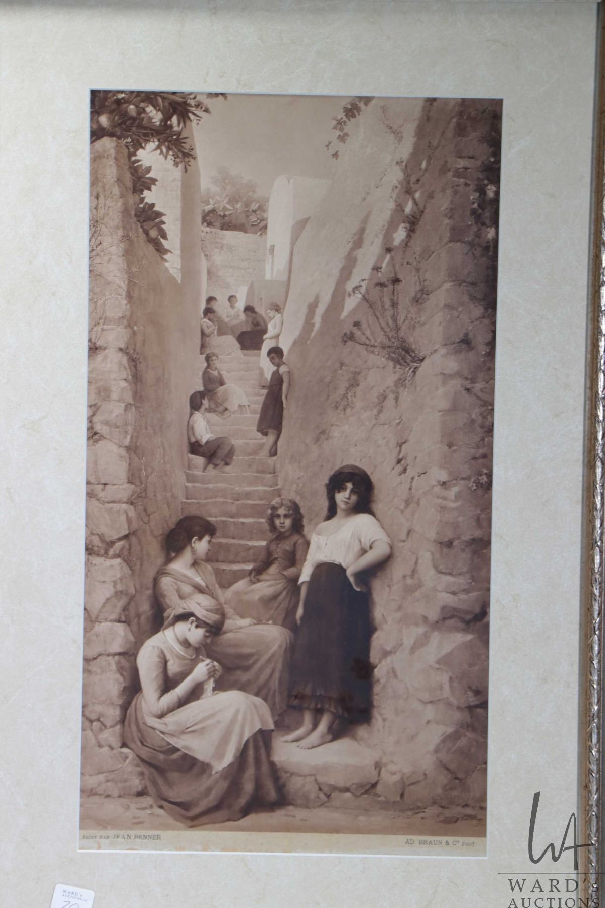 Two vintage framed prints including   A Corner of Shade in Capri  by Swiss-French artist Jean Benner