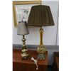 Two vintage lamps including brass table lamps and a blown glass lamp with brass base, both include shades