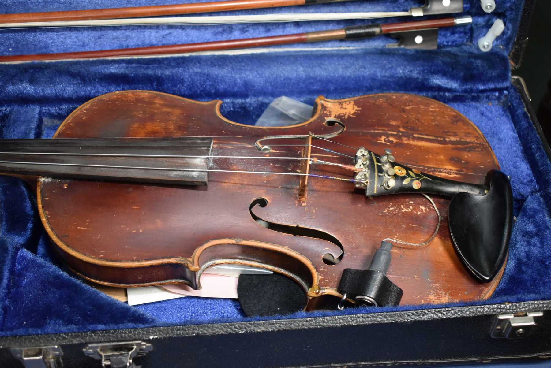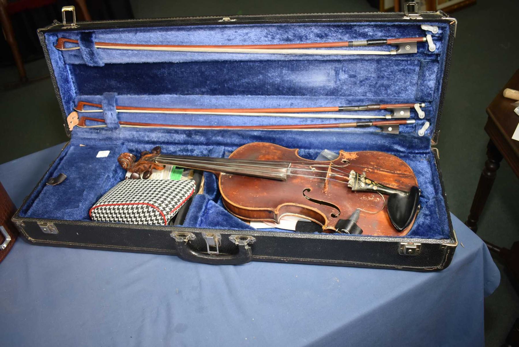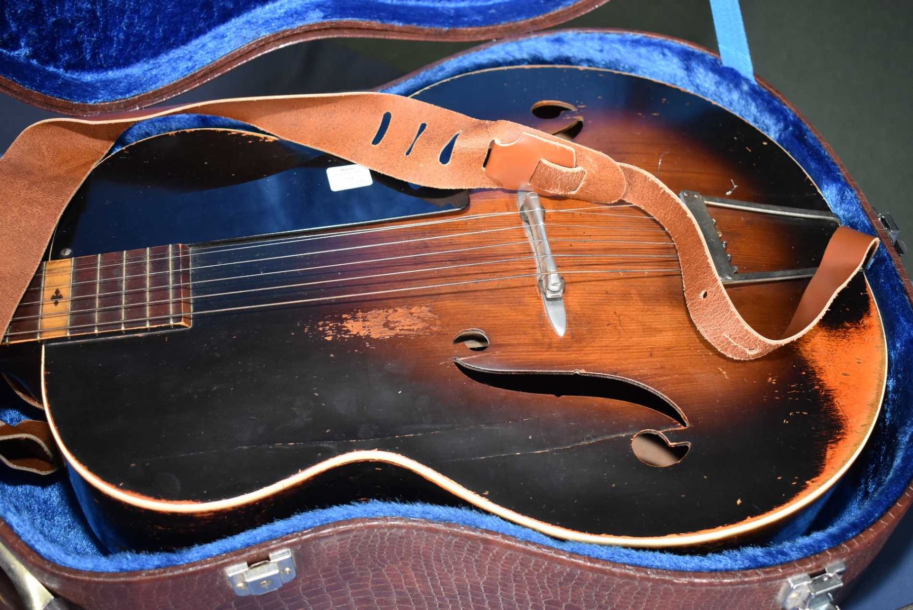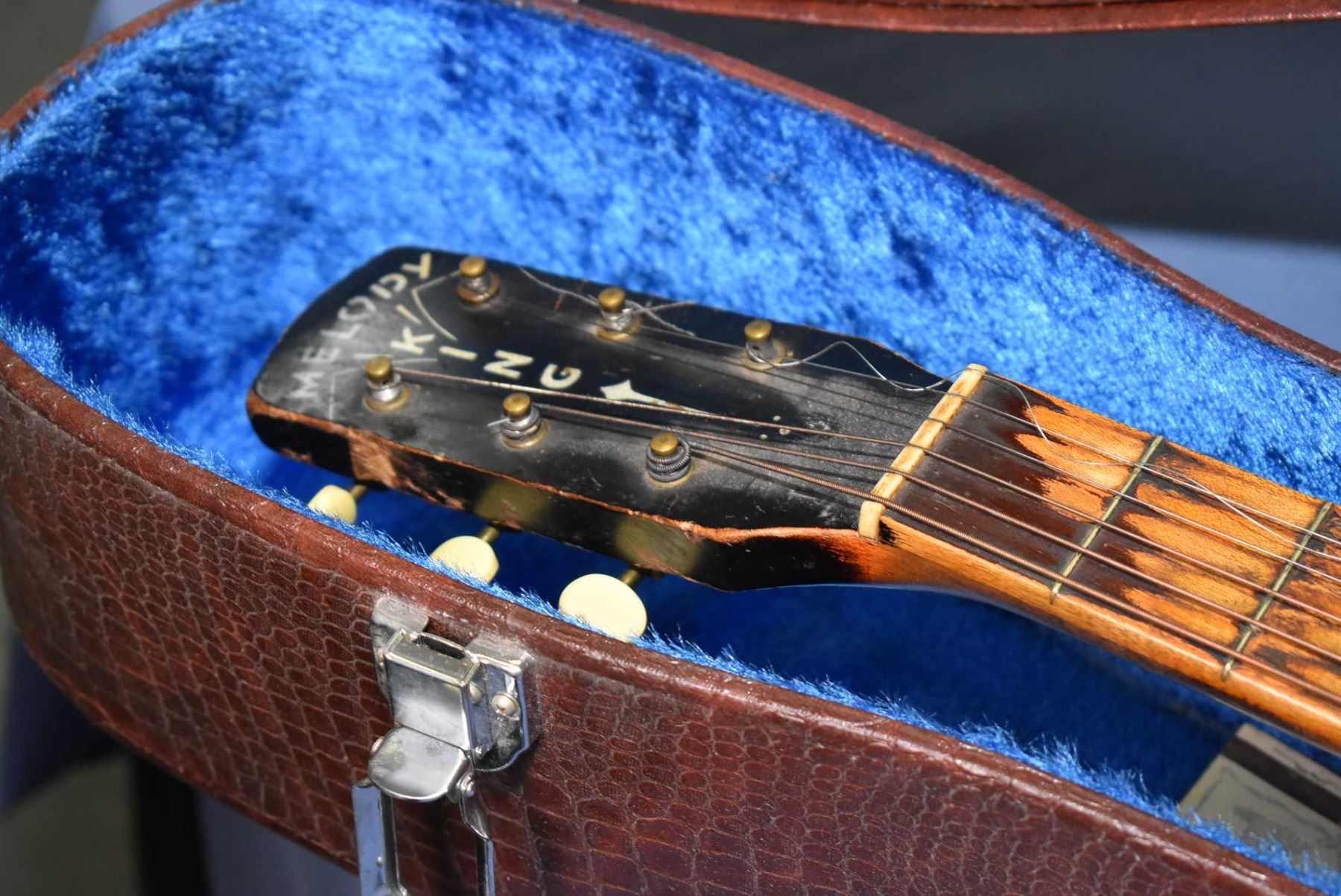 Two vintage musical instruments including a Melody King six string guitar in hard case and a violin also in hard case. Not Available For Shipping. Local Bidders Only