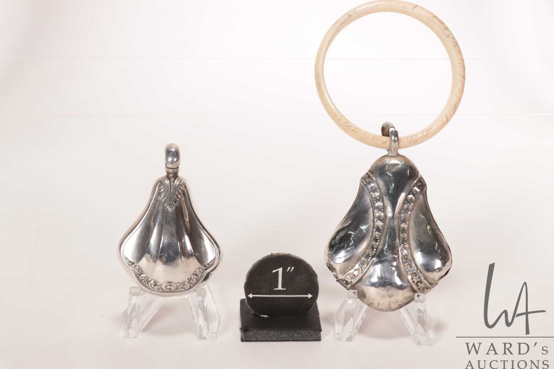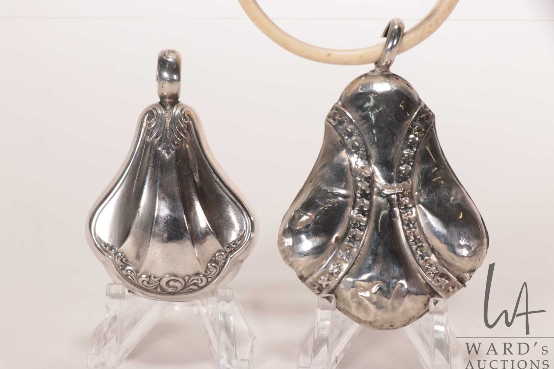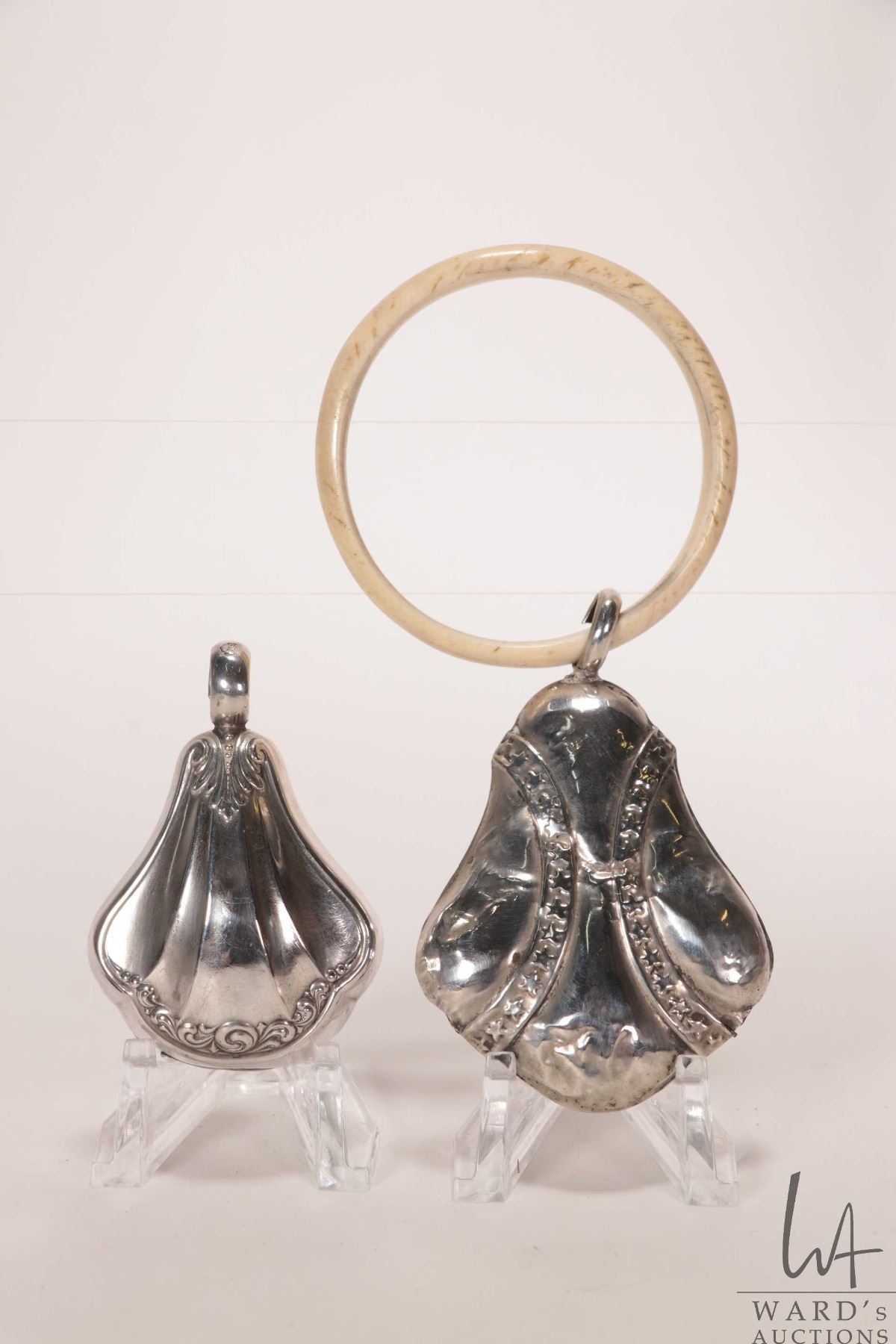 Two vintage silver baby toys including one with attached teething ring