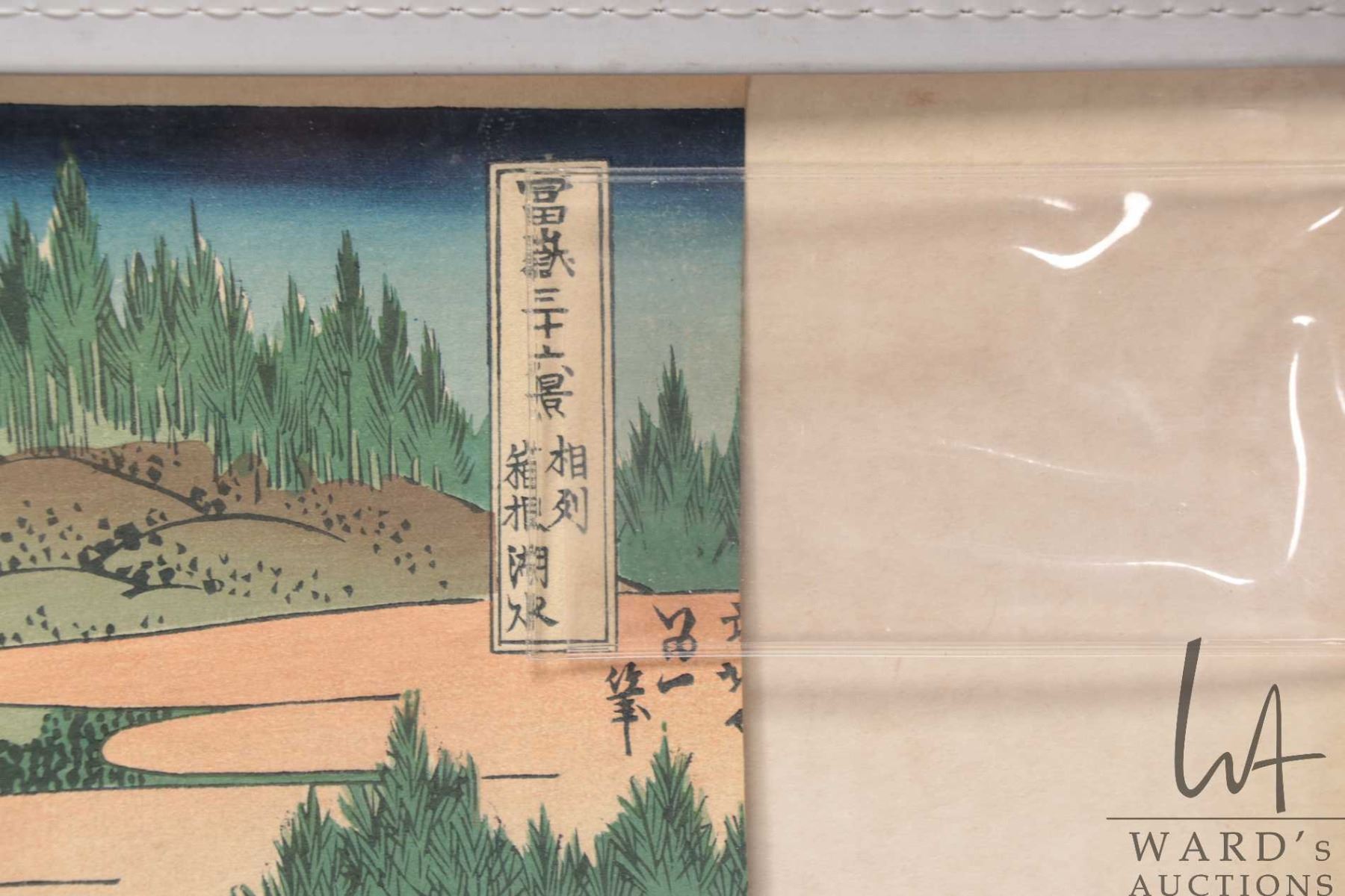 Two vintage unframed Japanese wood block print "Lake of Hakone in Sagami Province" no. 24 and "Nihon