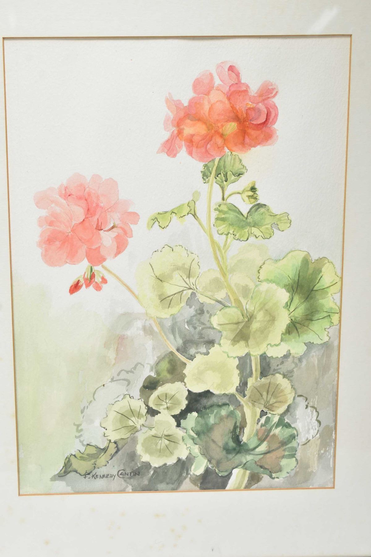 Two watercolour floral still-lifes including geraniums and daffodils both by artist F. Kennedy Cantin both 10" X 14"