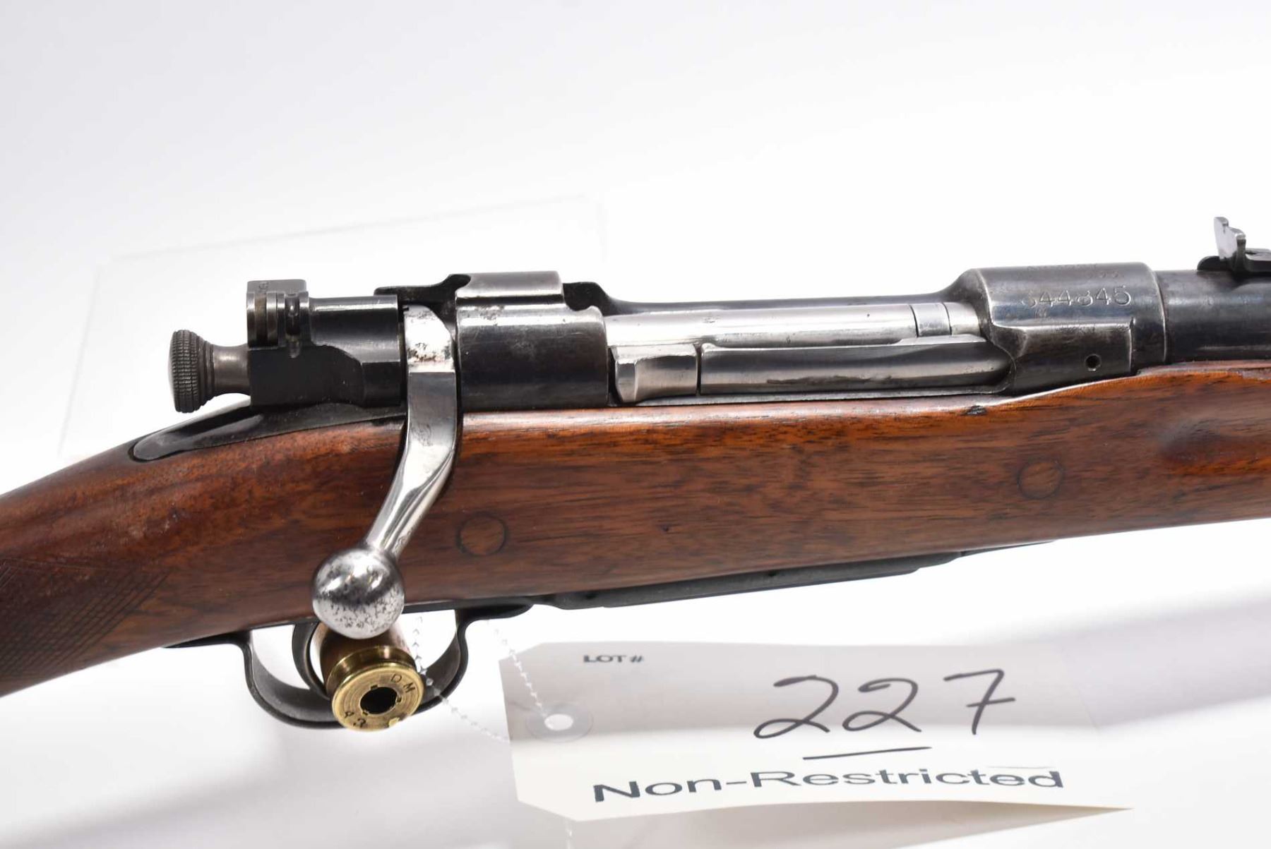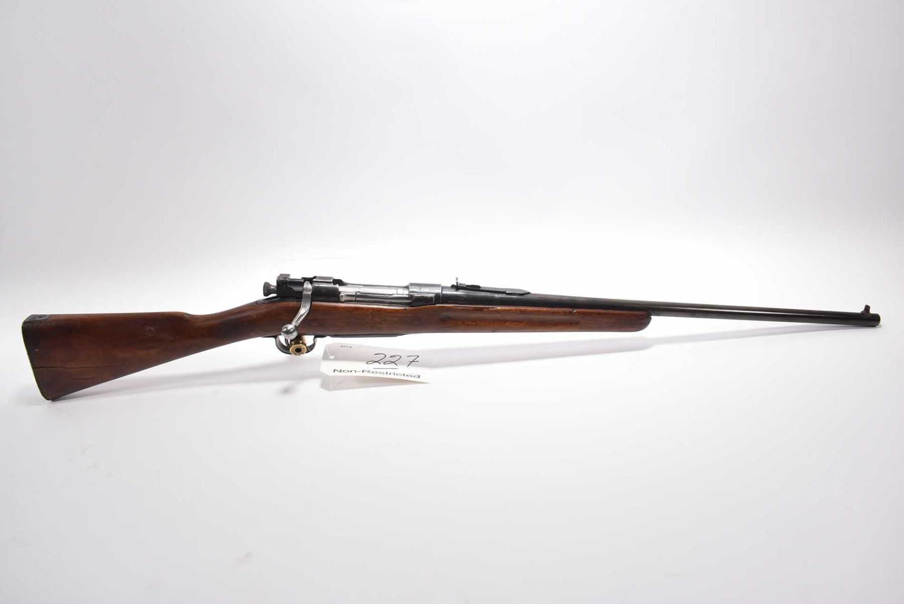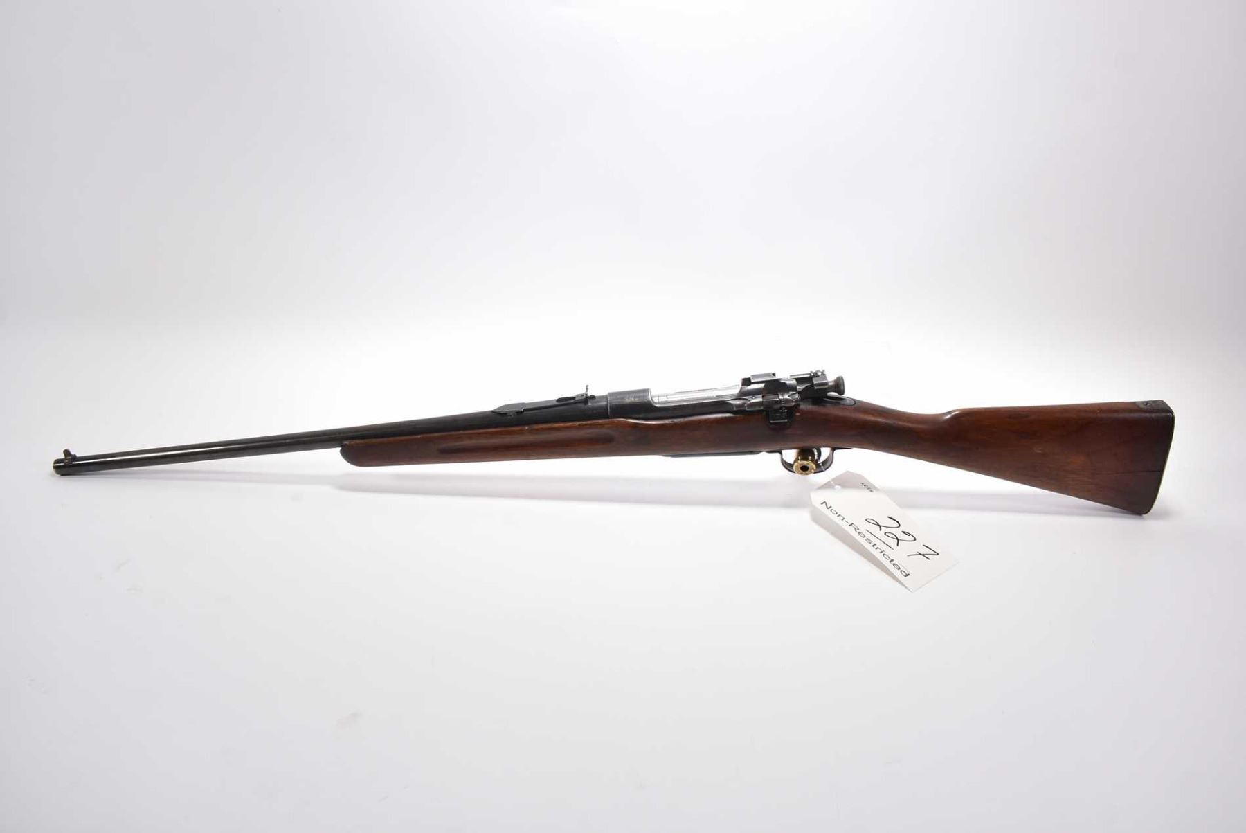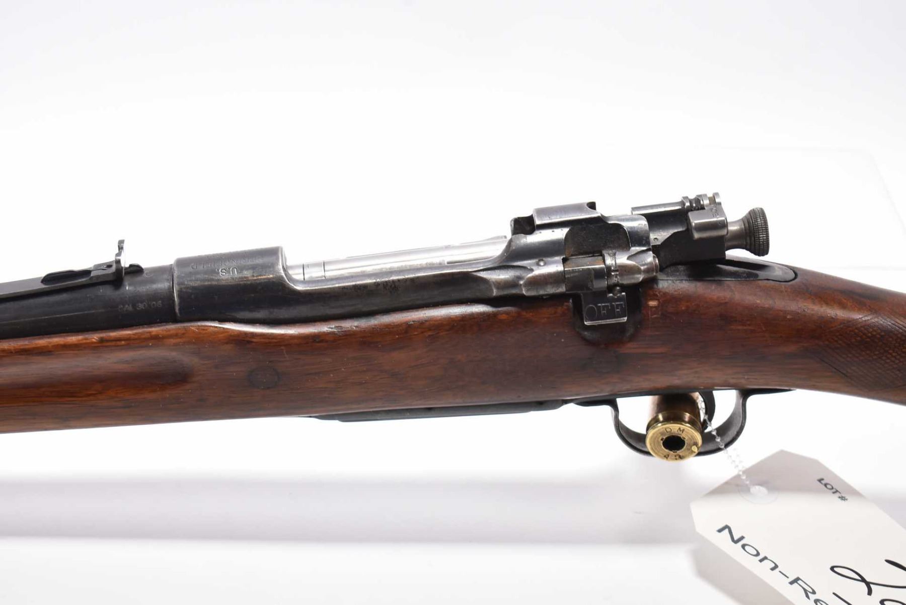 U.S. Springfield Armory Model 1903 .30 - 06 Sprg Cal Bolt Action Rifle w/ 22" bbl [ fading blue finish, barrel sights, stock has light checkering at wrist and fluted forend, cracks by metal butt plate, etc., various marks and scratches to wood and metal ] Ser # 644845