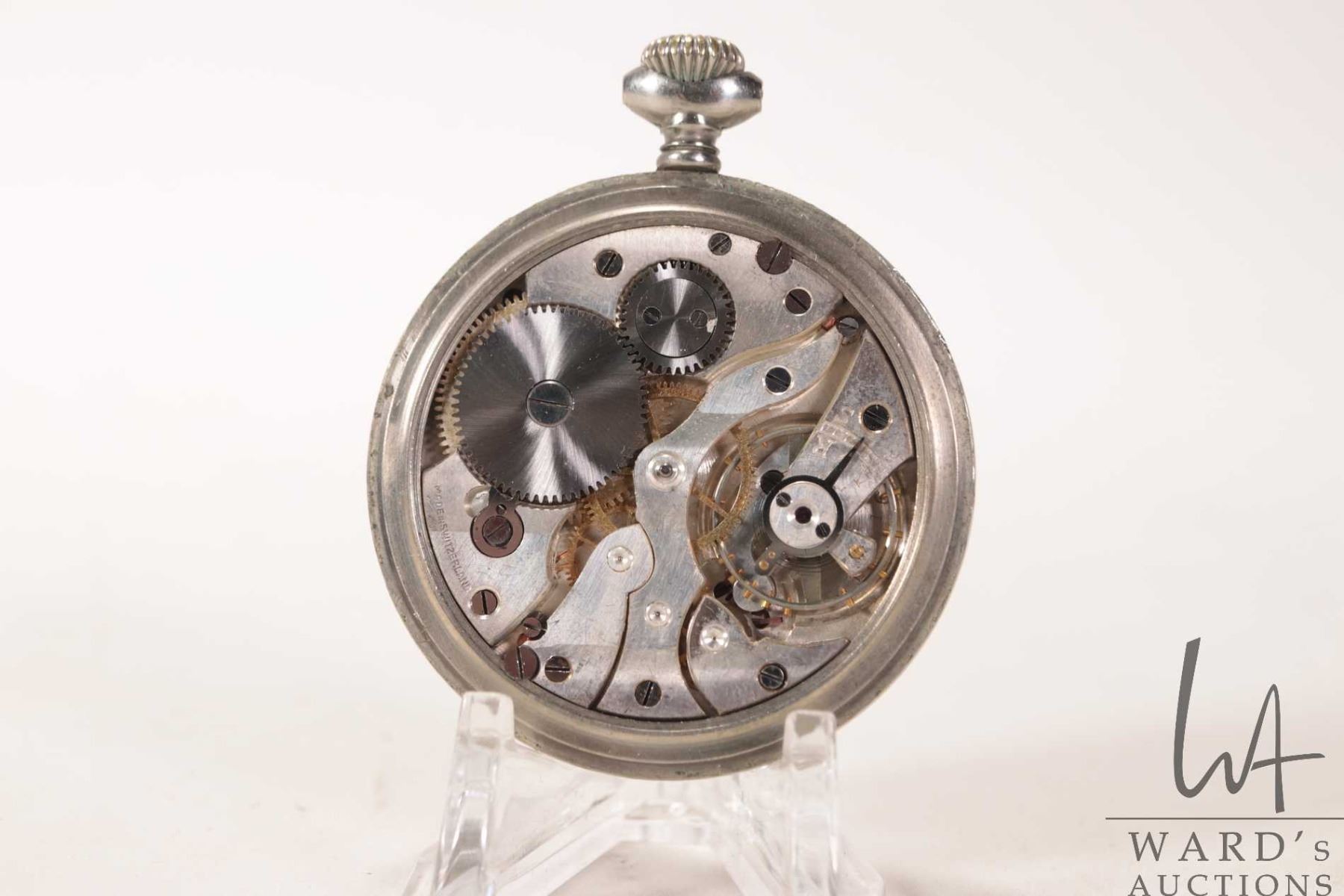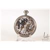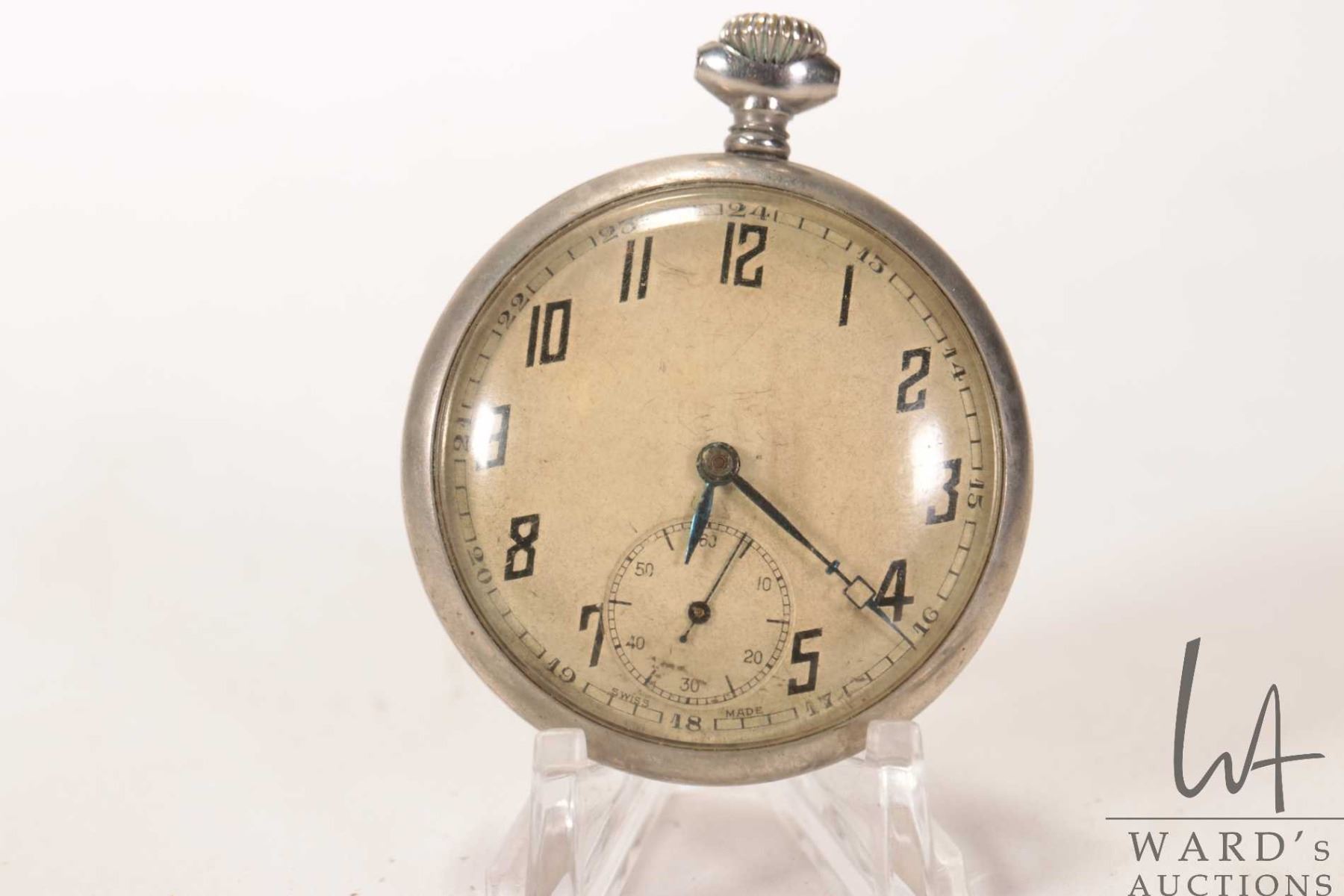 Umarked Swiss made pocket watch in silver/ silver like case, single sunk second sweep and Arabic num