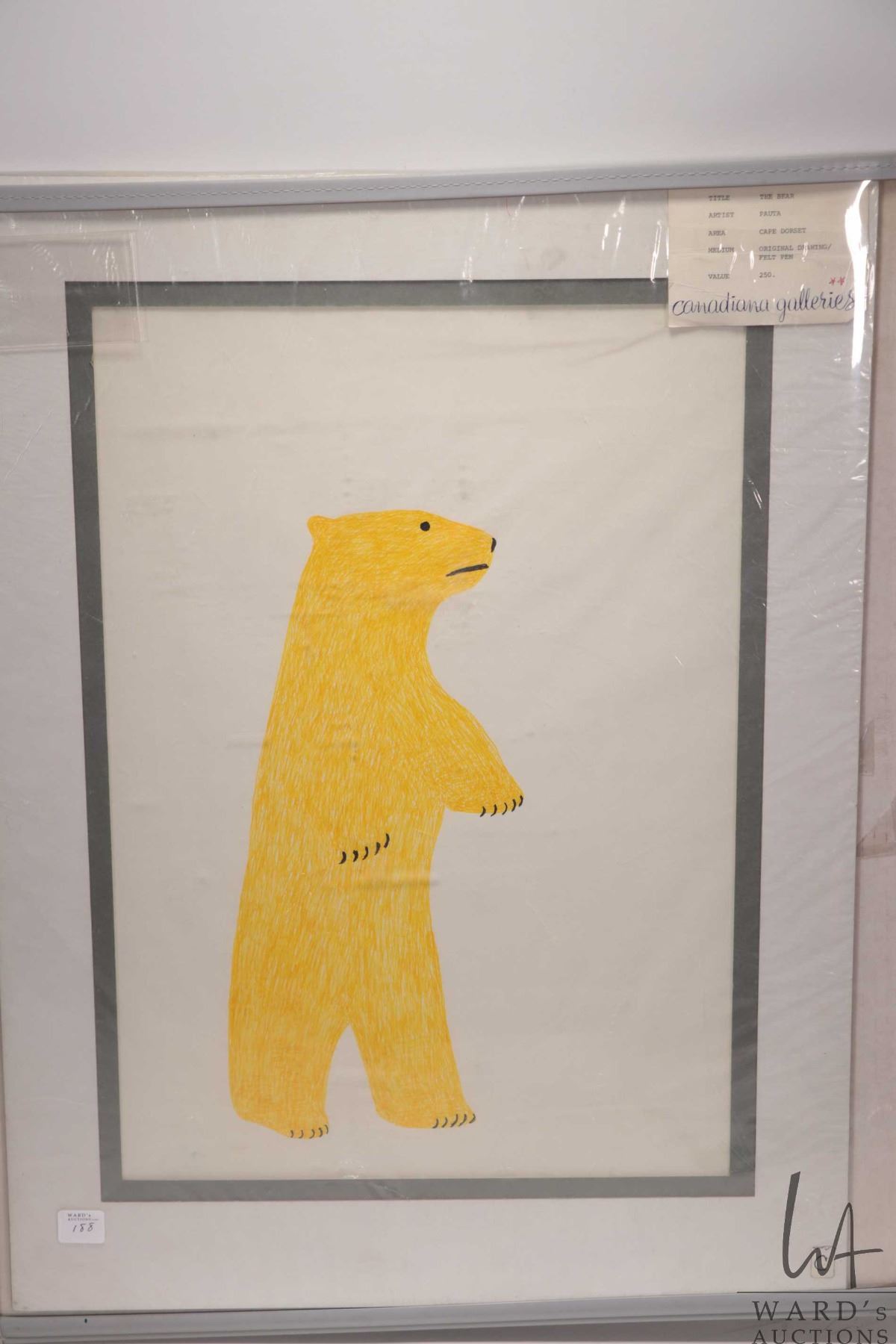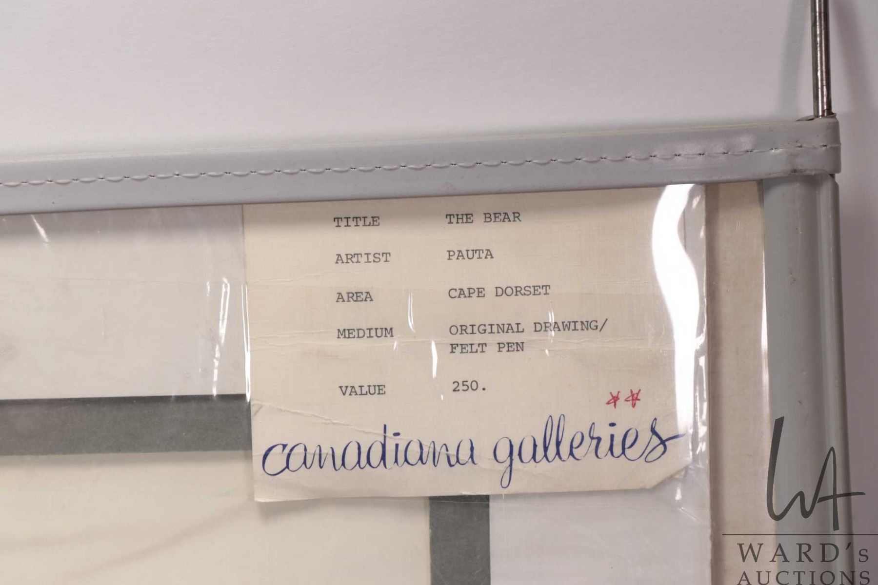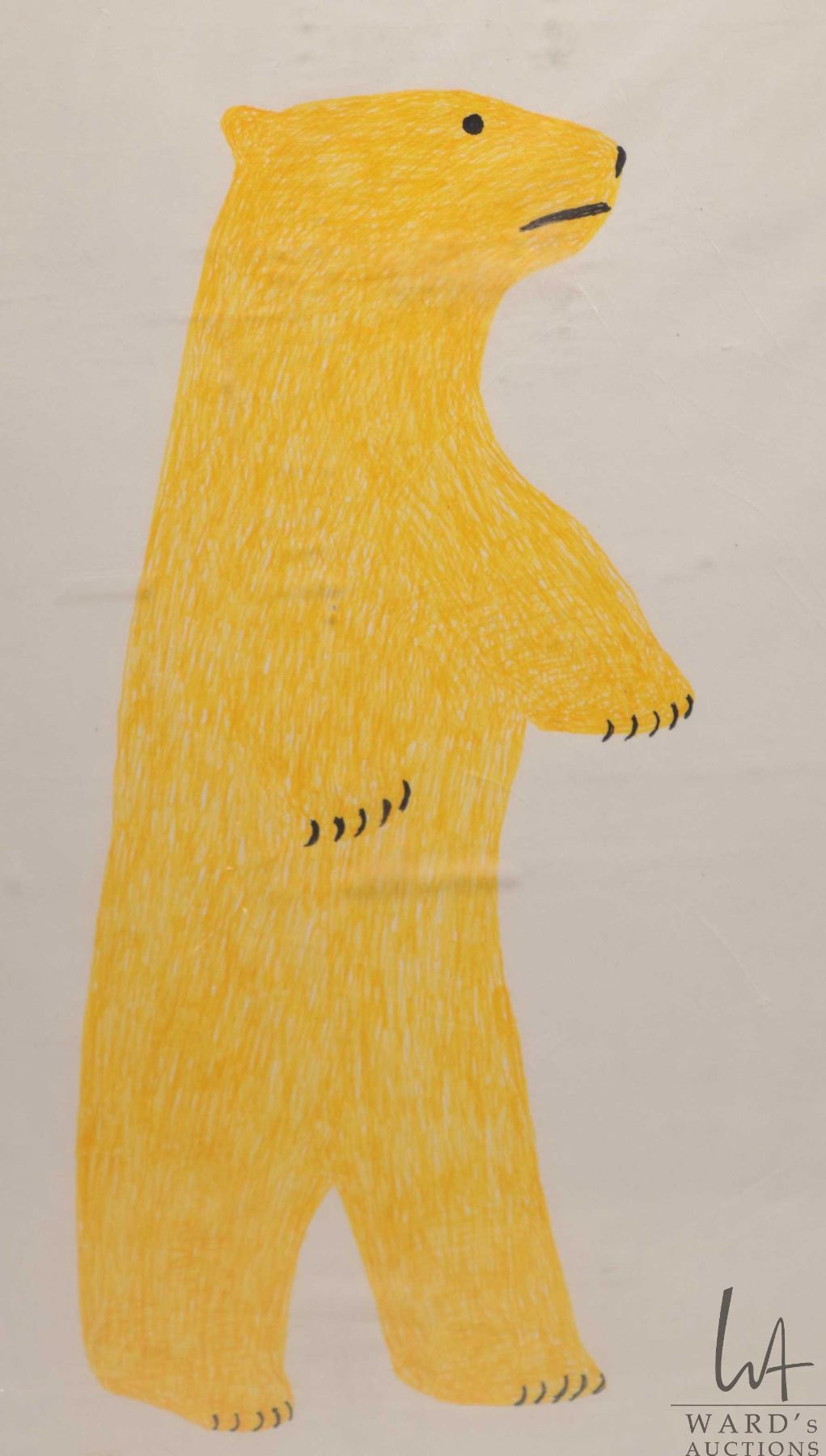 Unframed coloured felt pen drawing titled, "The Bear" by artist Pauta, Cape Dorset, 19" X 14"