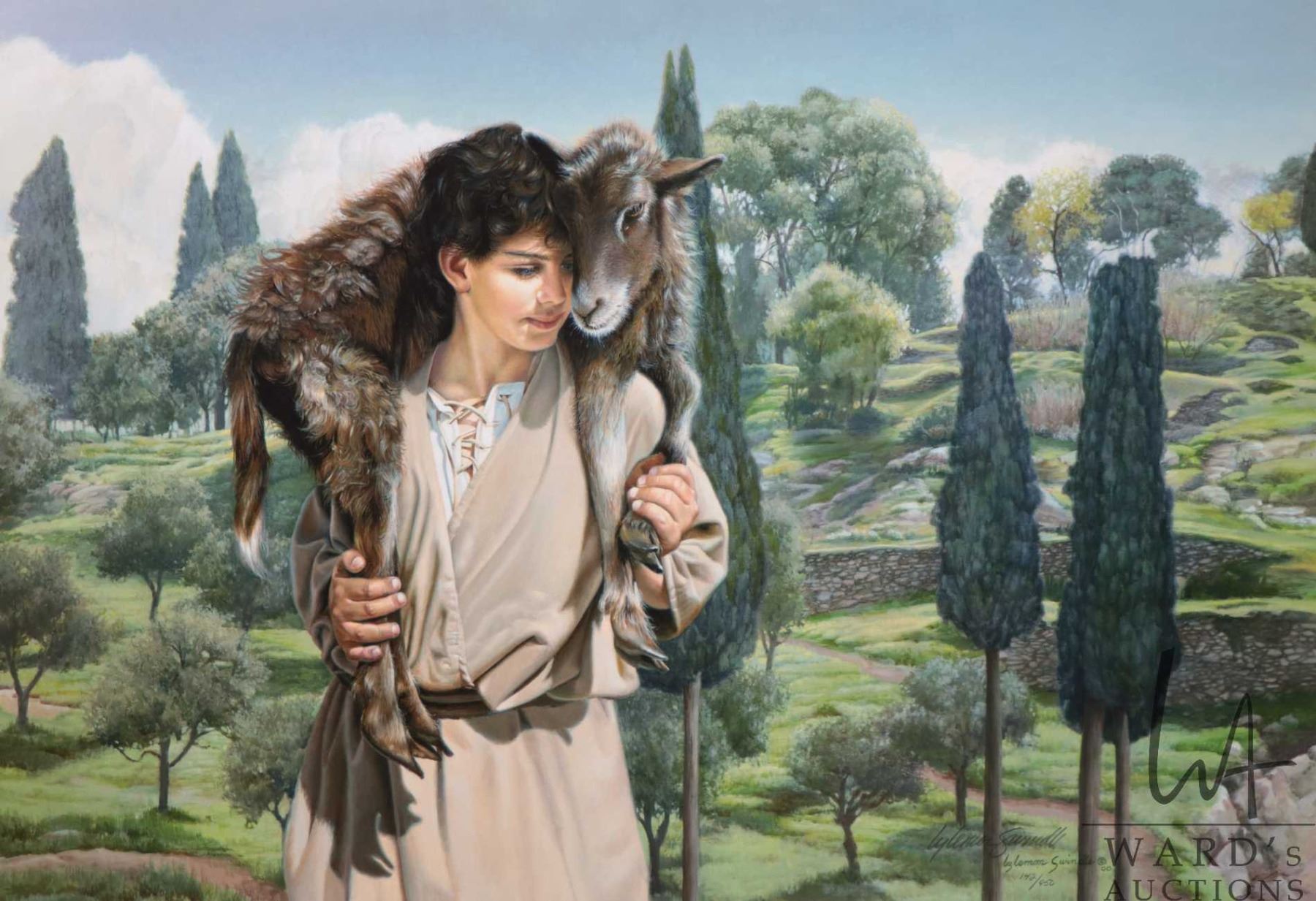 Unframed limited edition, artist signed print "The Lamb of God" pencil signed Liz Lemon Swindle, 142/950, 16" X 24"