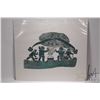 Unframed limited edition stencil print, titled "A Family Preparing Food", pencil signed in syllabics