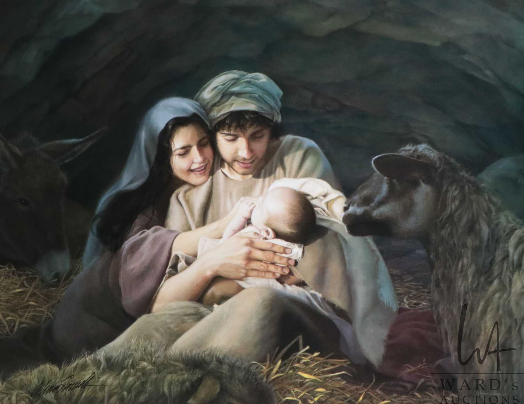 Unframed open edition, artist signed print "Silent Night" ink signed Liz Lemon Swindle, 15" X 20"