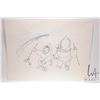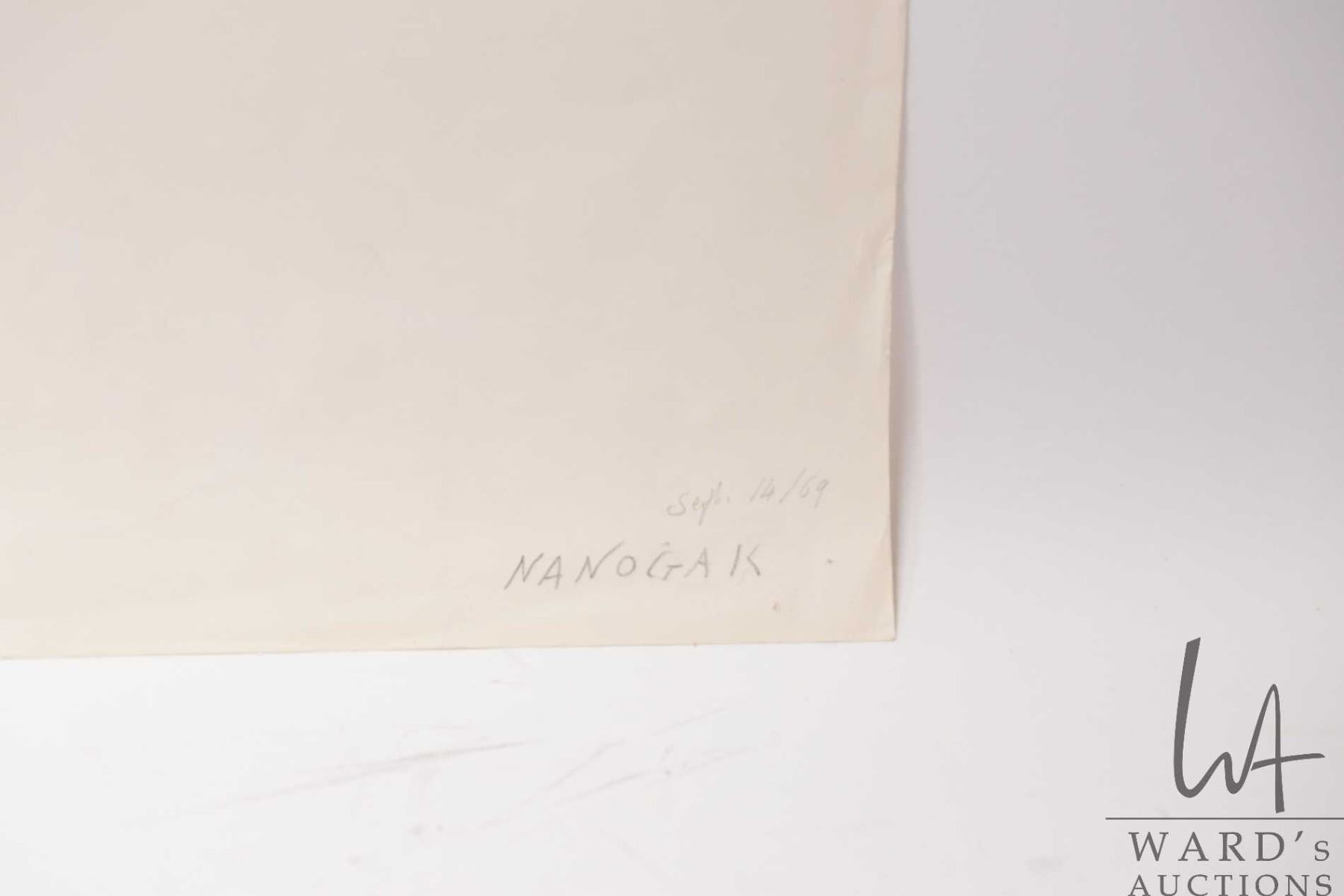 Unframed original coloured ink drawing, titled "Fishing Through The Ice" by artist Nanogak, 1969, Ho