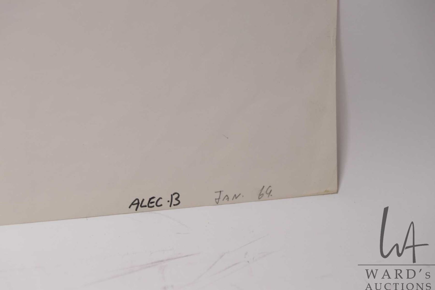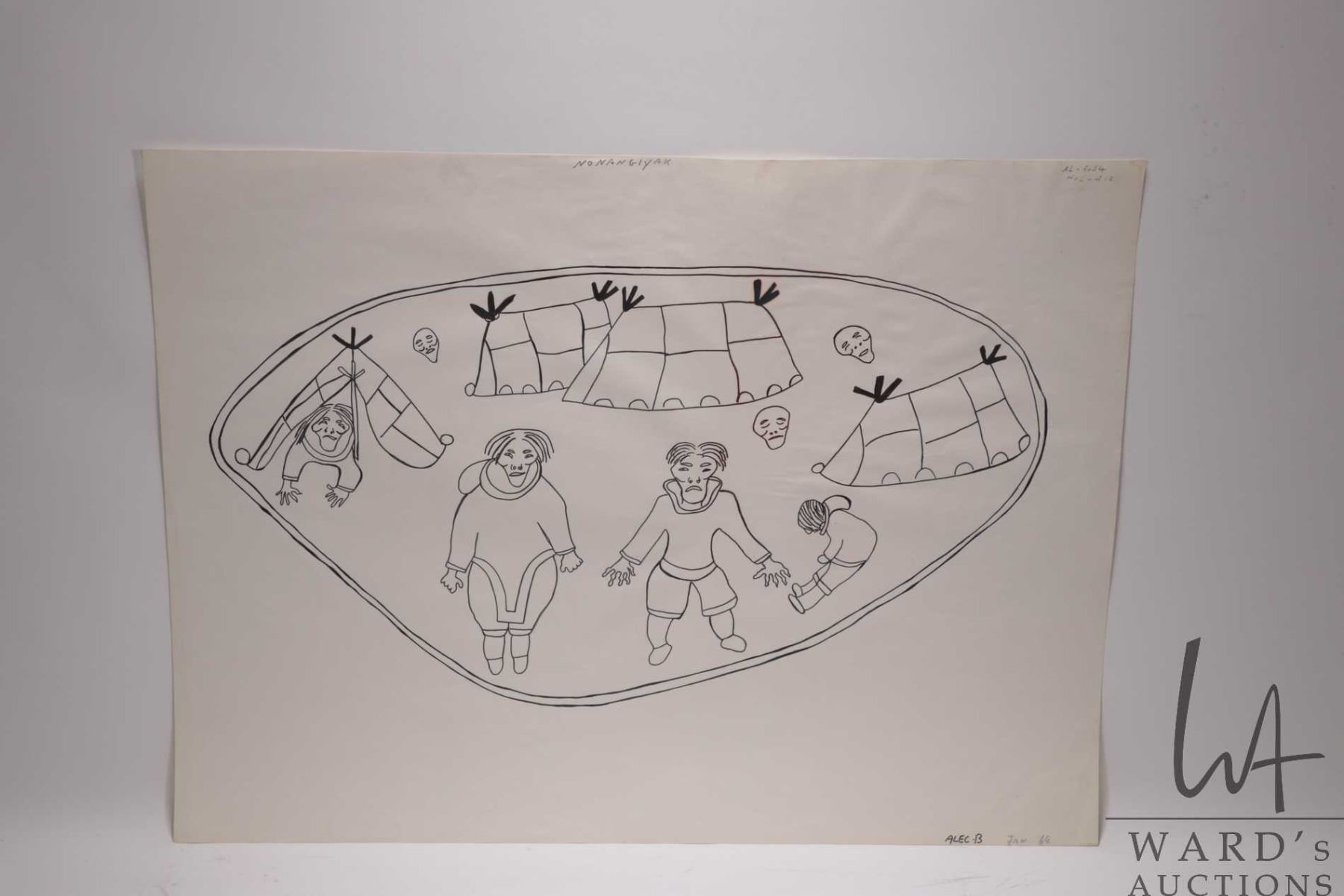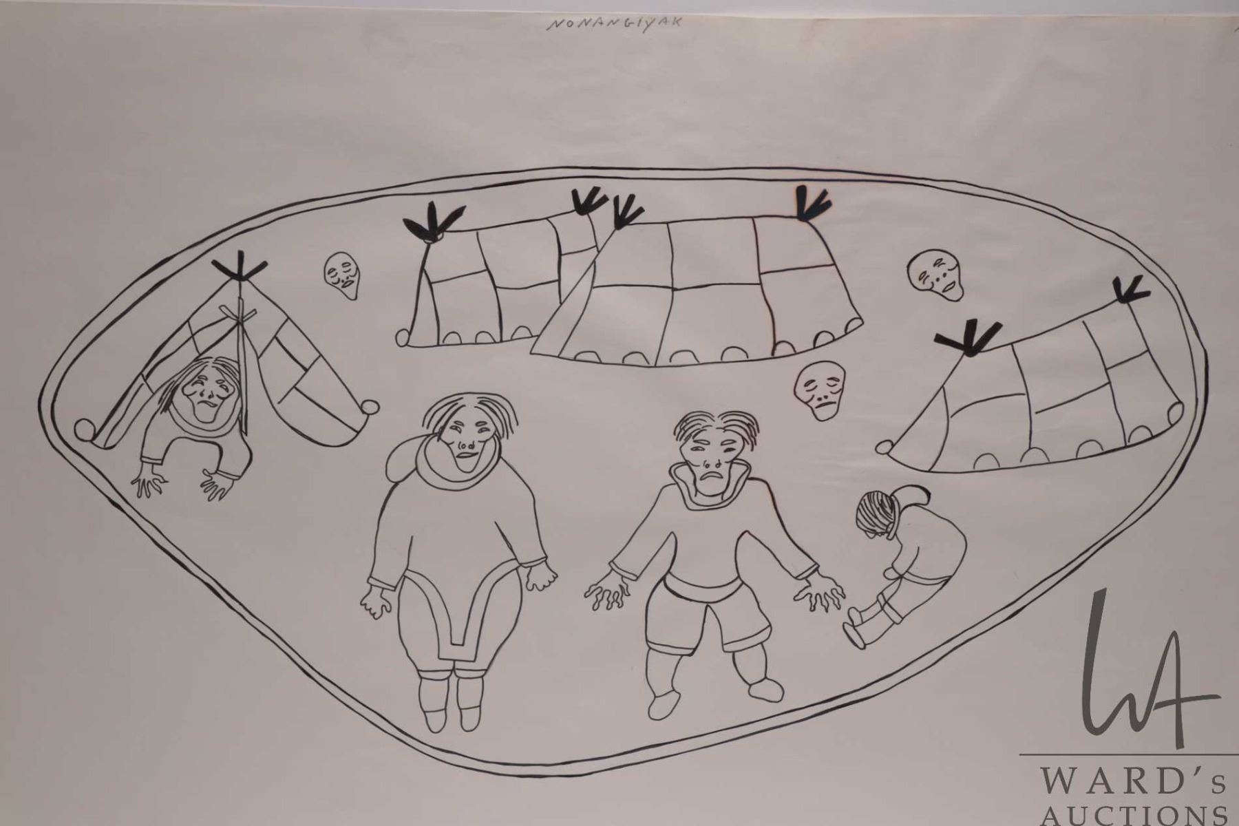 Unframed original coloured pen drawing, titled Nonangiyak/ Summer Camp Scene, by artist Alec Banksland, 1969, 18" X 24"