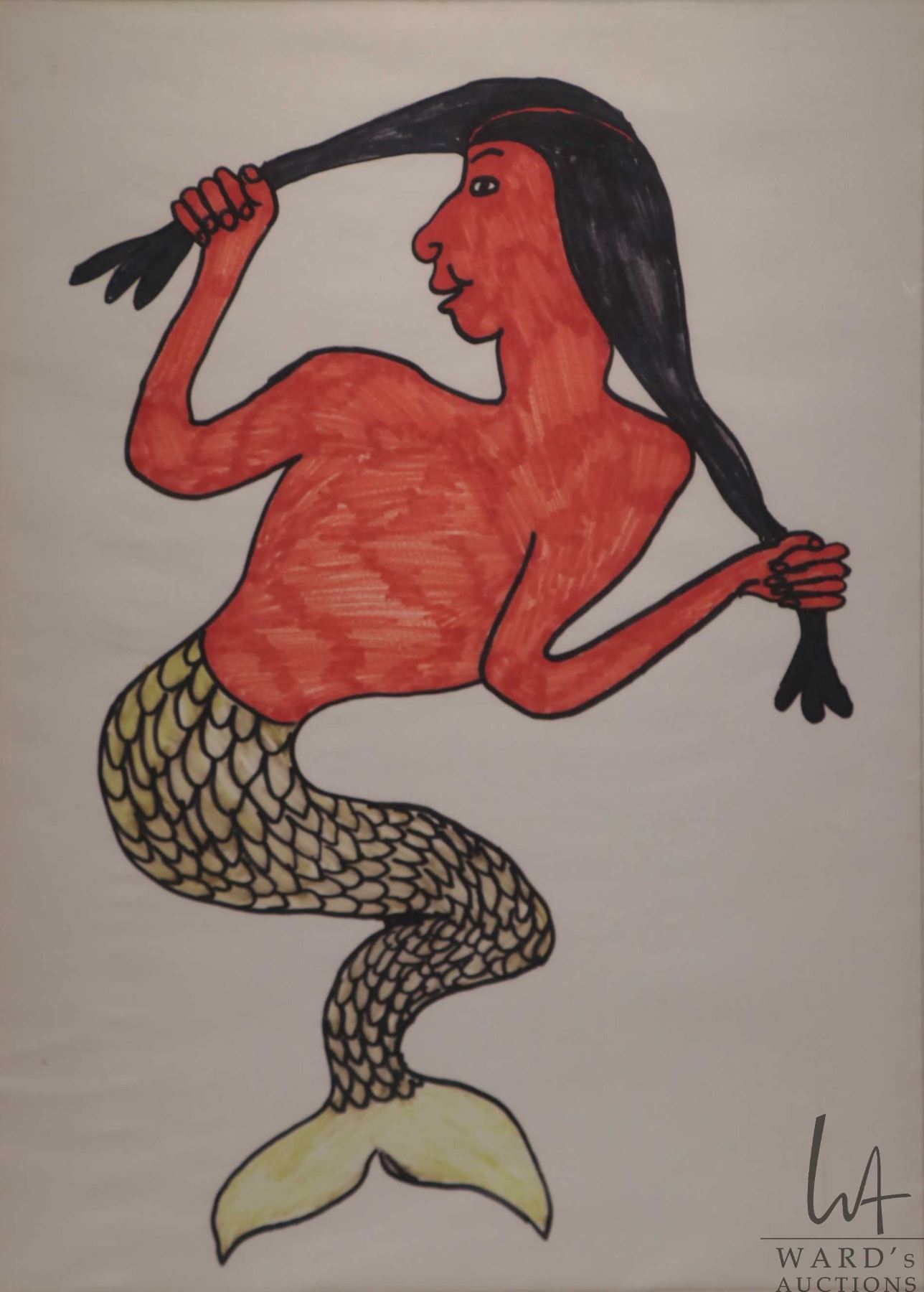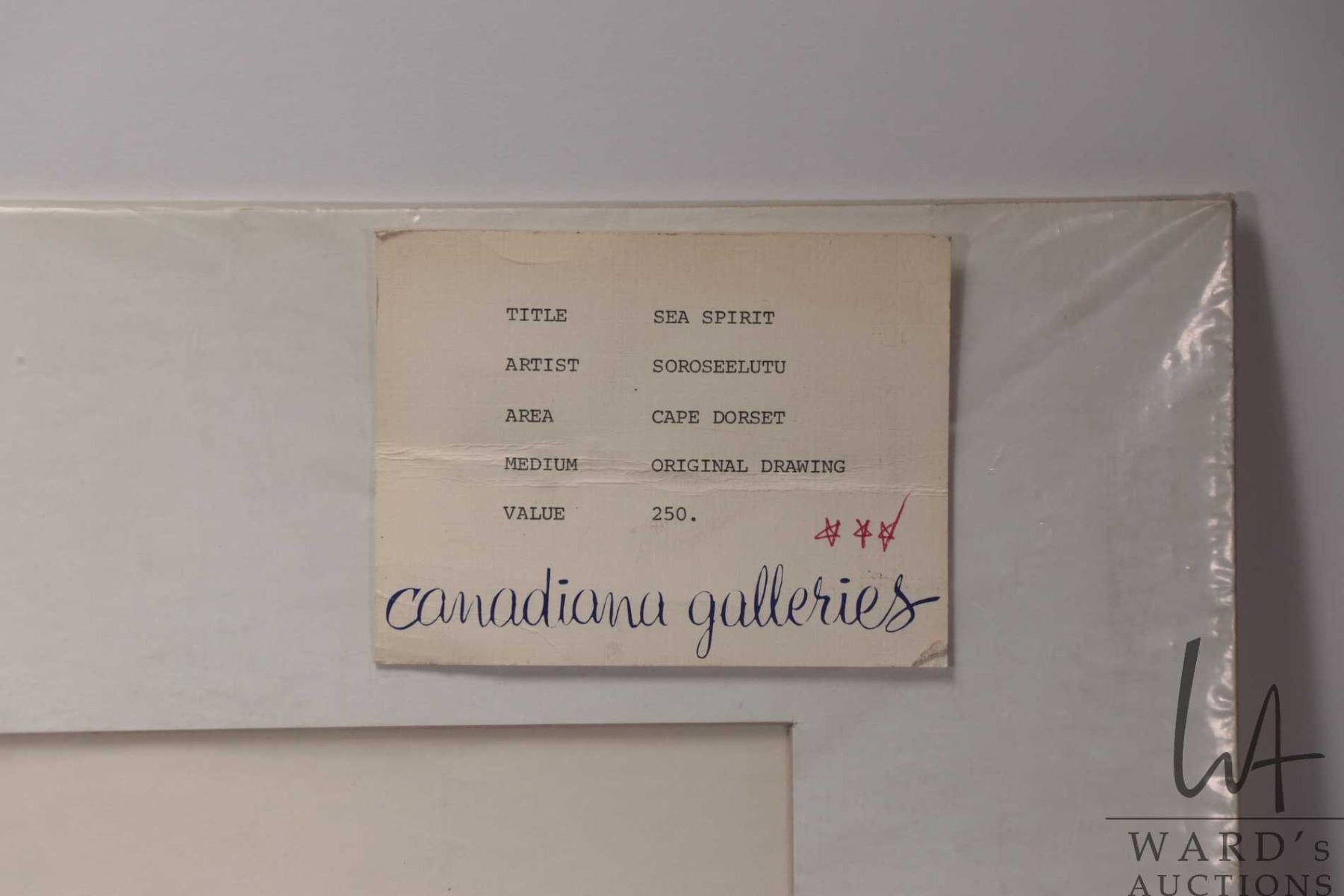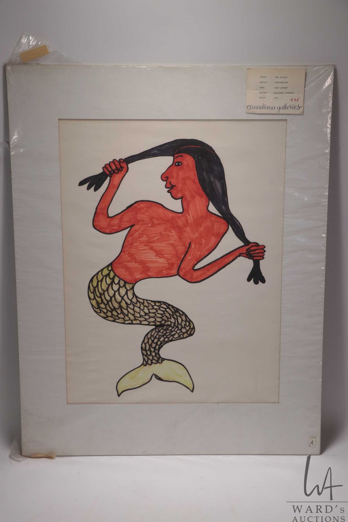 Unframed original coloured pencil drawing titled "Sea Spirit" by artist Soroseelutu, Cape Dorset, 20