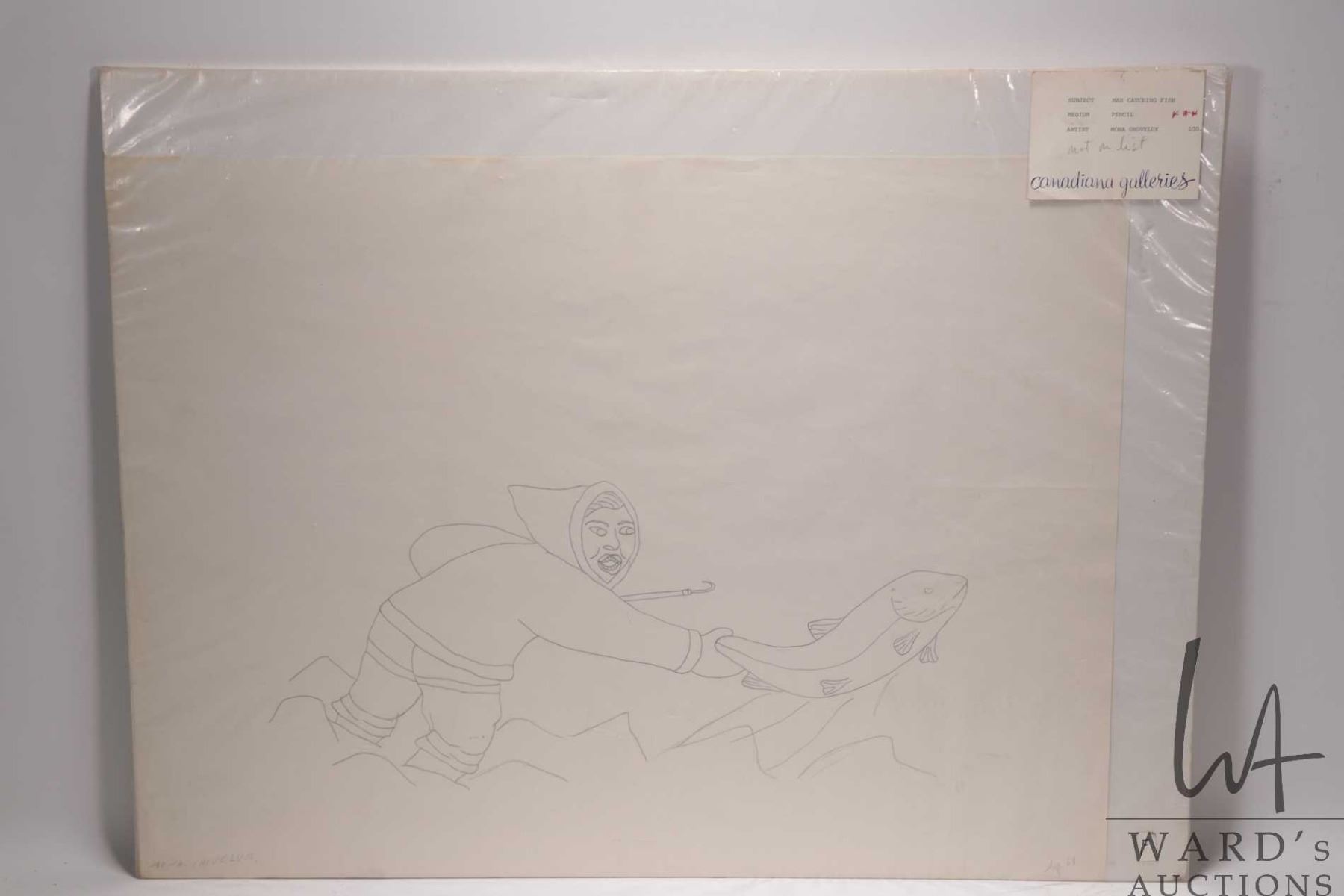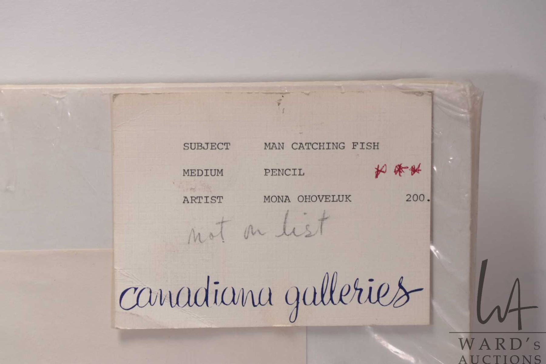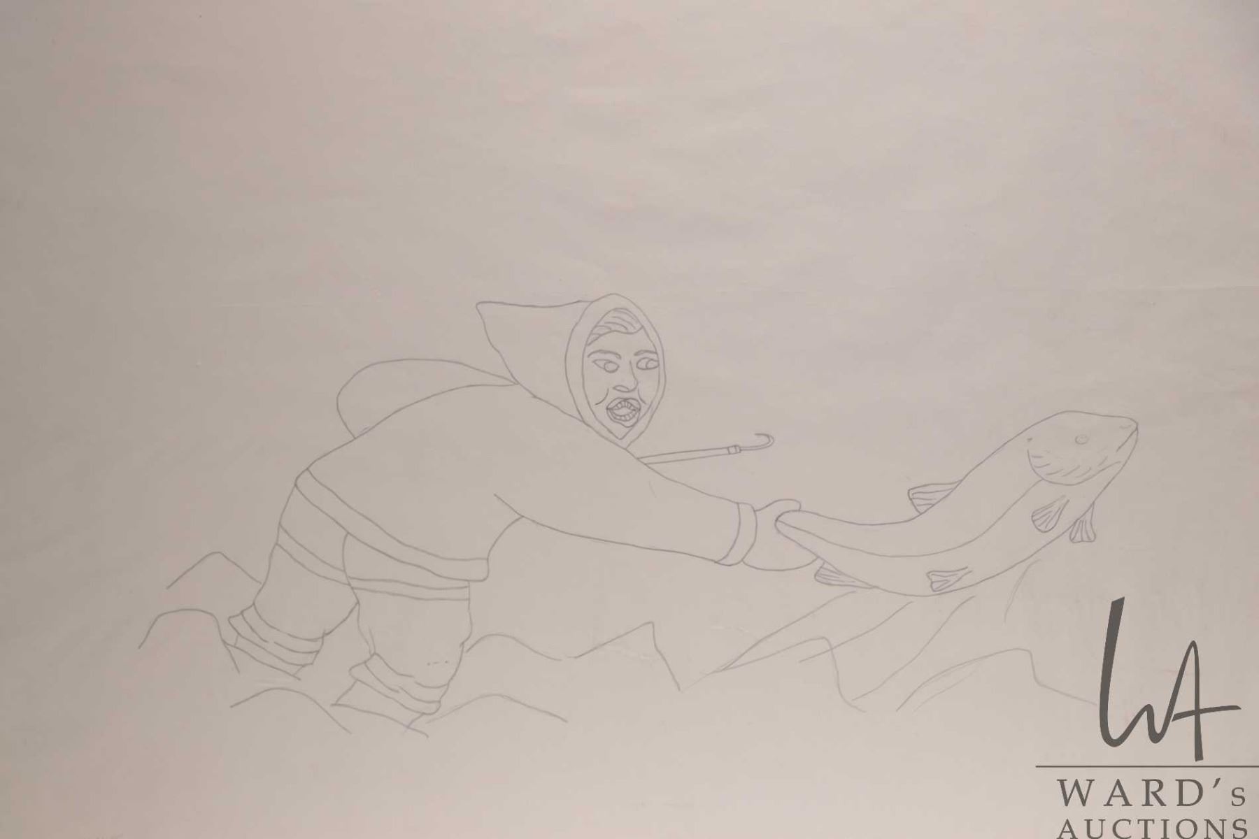 Unframed original pencil drawing "Man Catching Fish" by artist Mon Ohoveluk, 1969, 18" X 24"