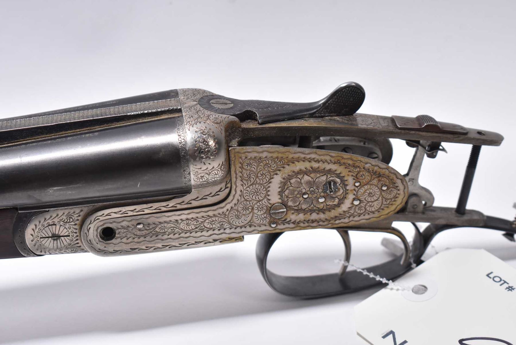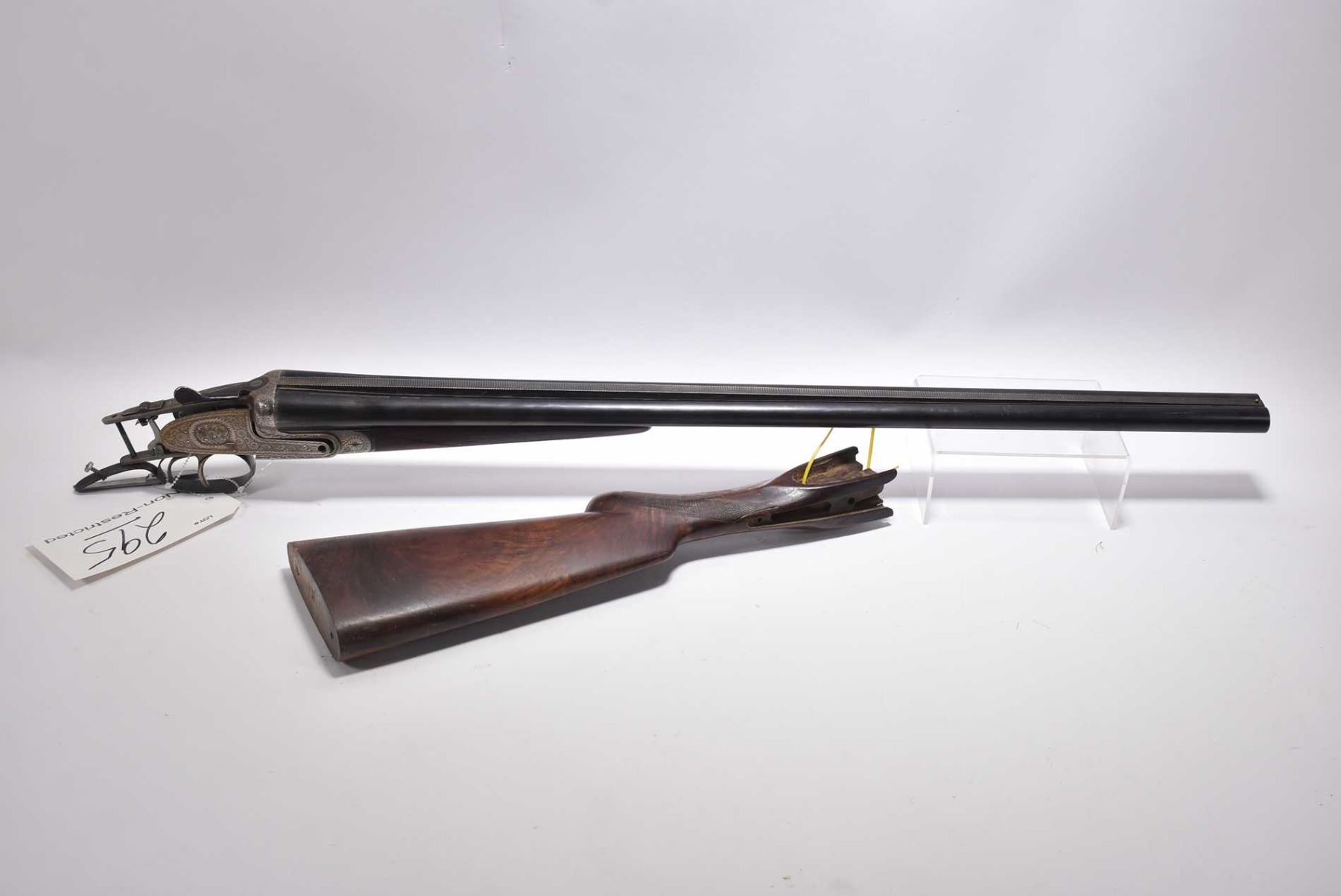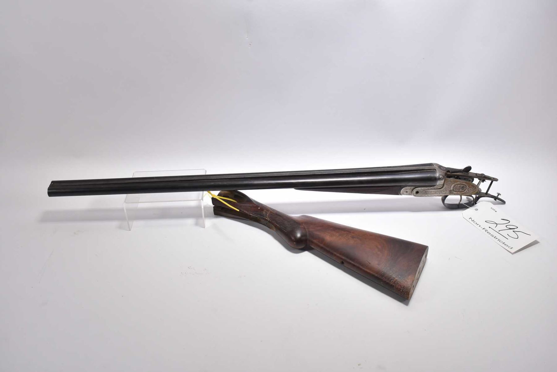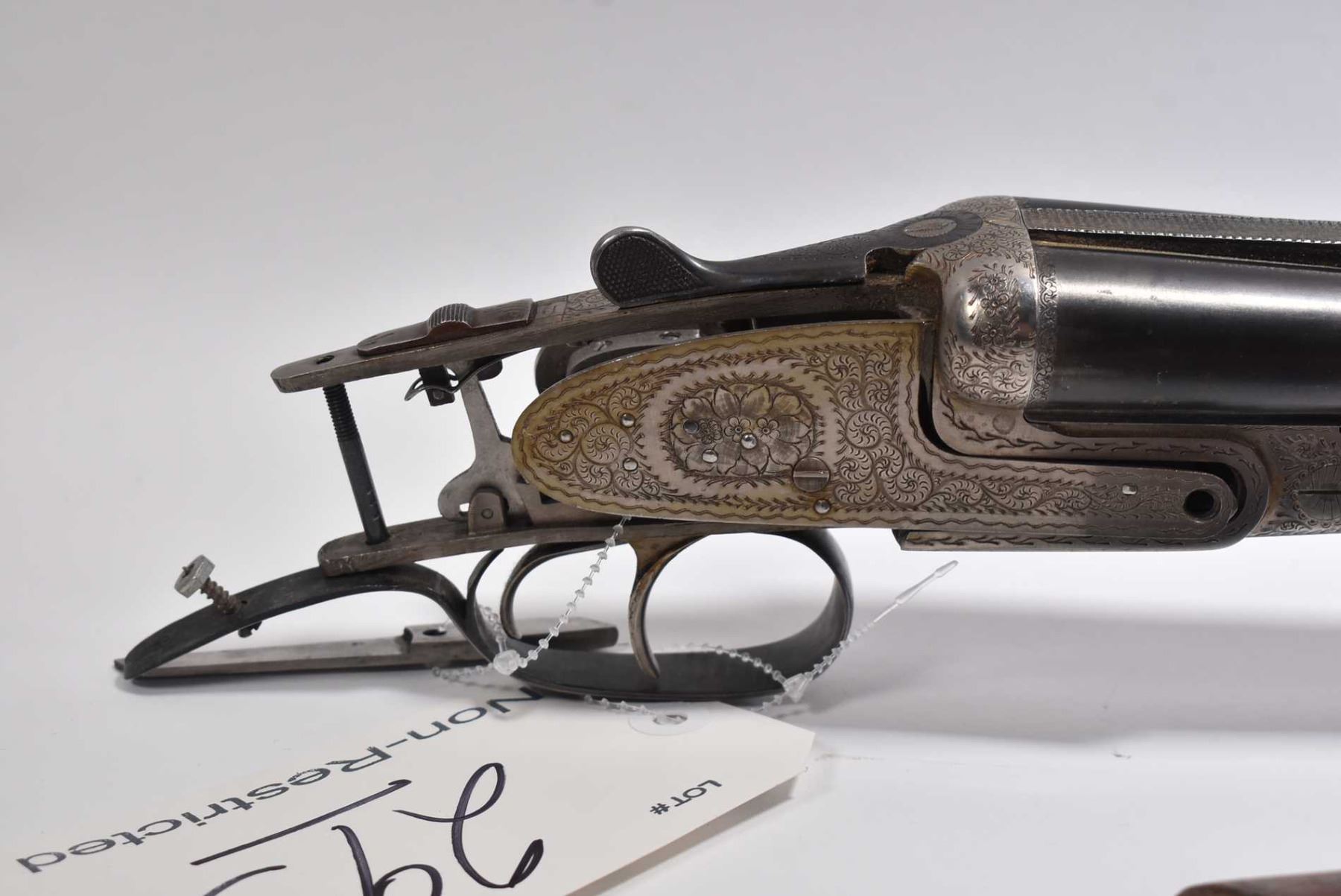 Unknown Spanish Model Side by Side .16 Ga ? Break Action Shotgun w/ 27 1/2" bbls [ fading blue finish on barrels, coin finished engraved receiver, side plate, etc.,butt stock damaged and not on gun MISSING SOME RECEIVER PARTS, NEEDS WORK ] Ser # Unknown