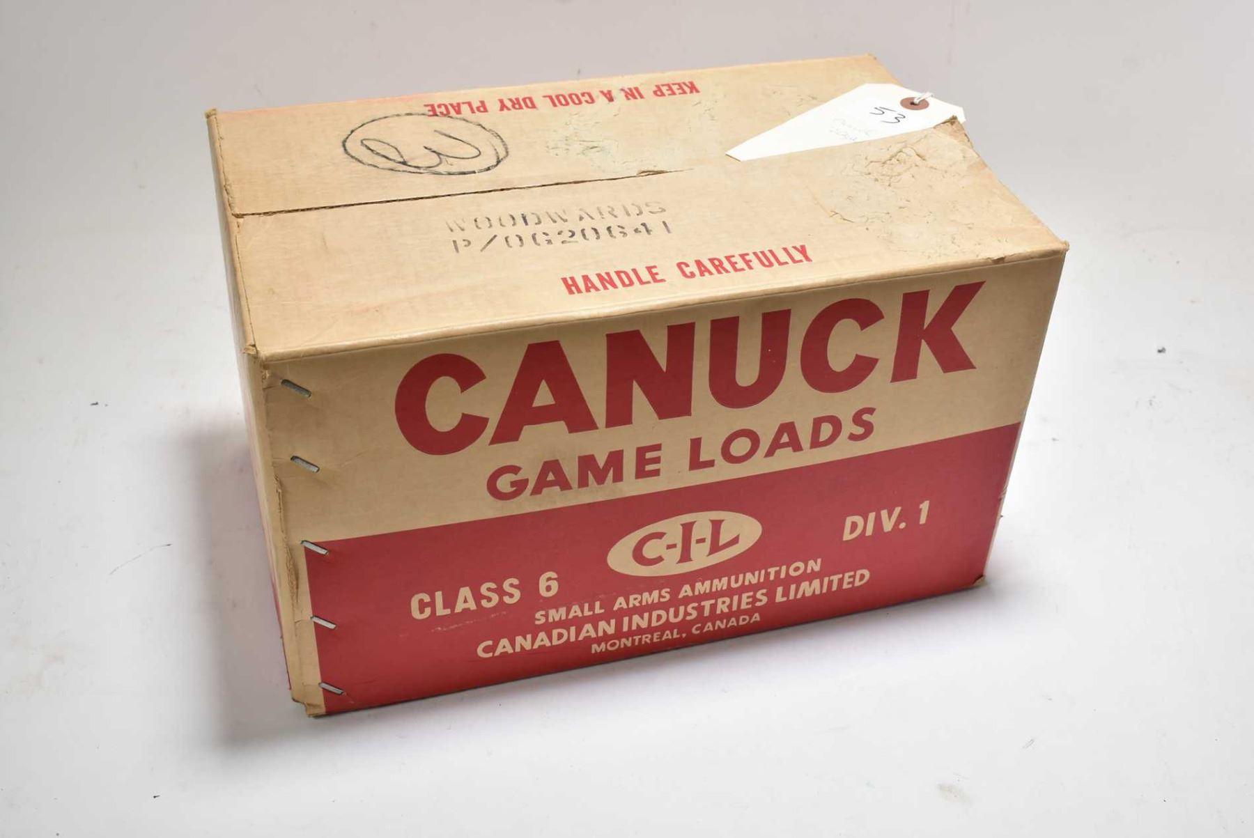 Unopened box of Canuck Standard 20 gauge DM-5 games loads, 500 count box with Woodwards stamp