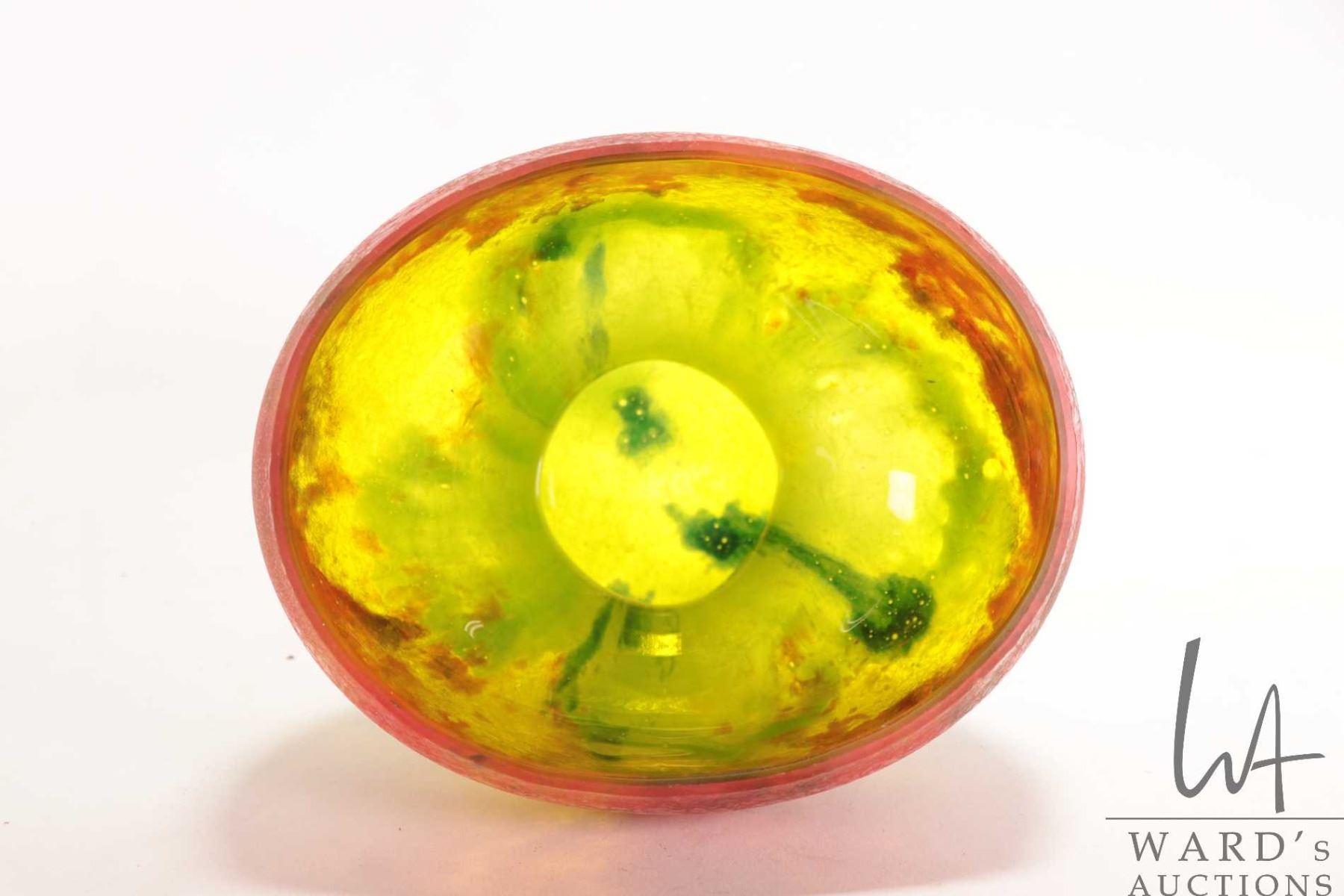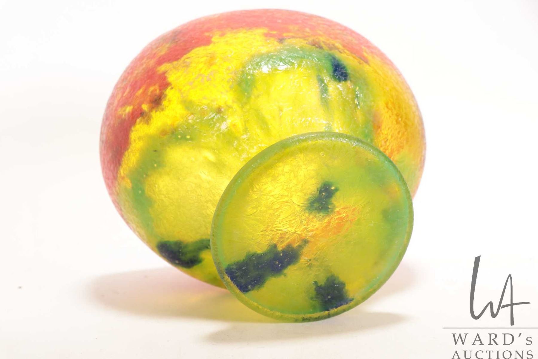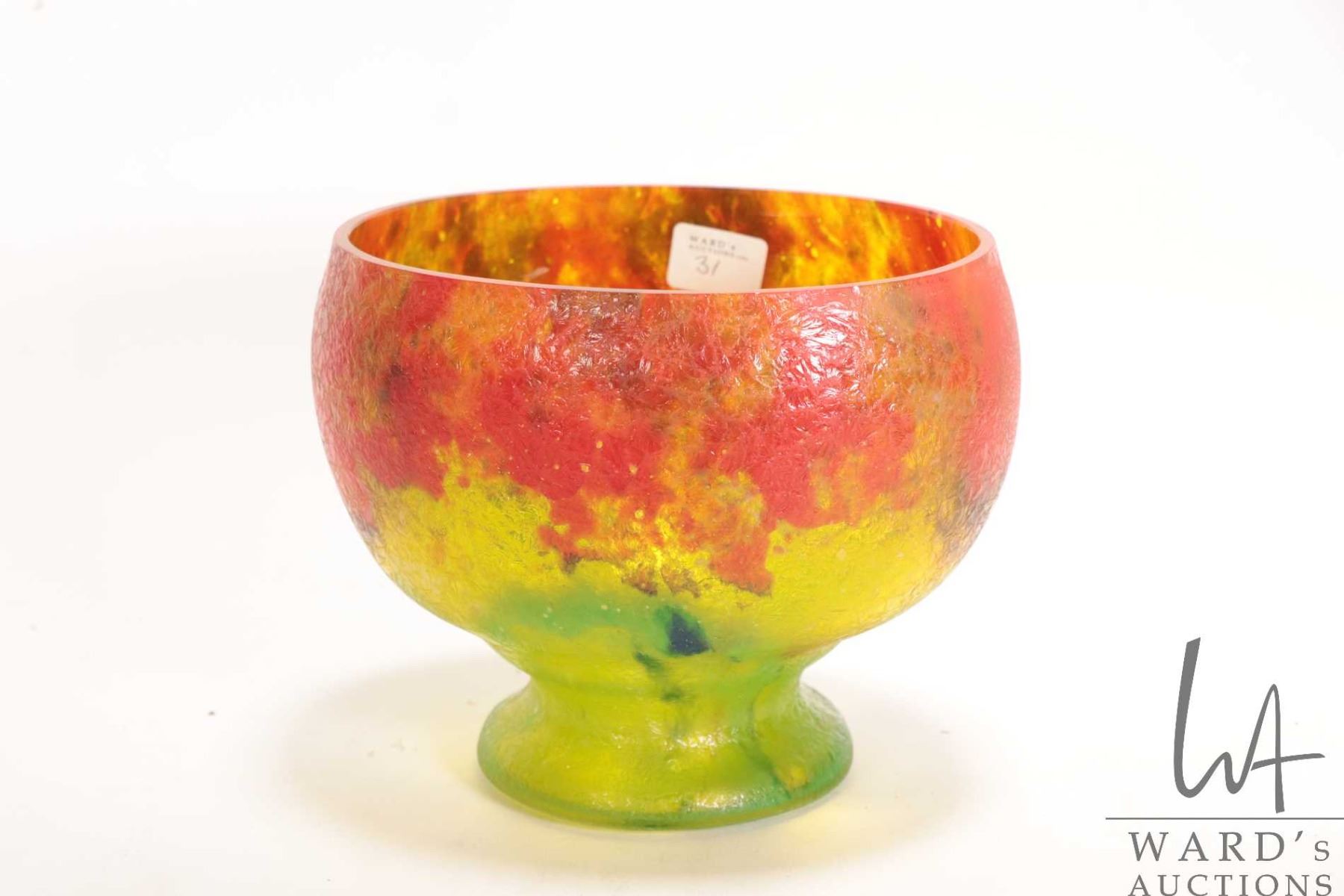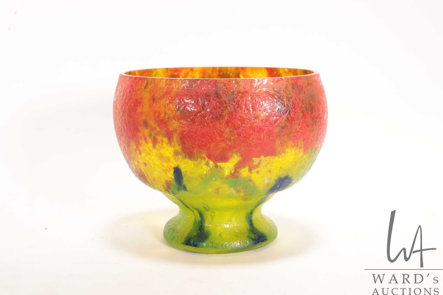 Unsigned Ernest Steinwald & Co. Czechslovakian glass vase, model 65 with multiple colours and ice crystal finish, 5 1/2" in height