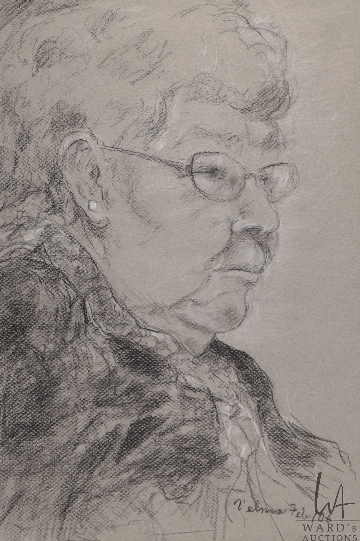 Velma Heath, artist signed charcoal portrait of an old woman, 21" X 15 1/2"