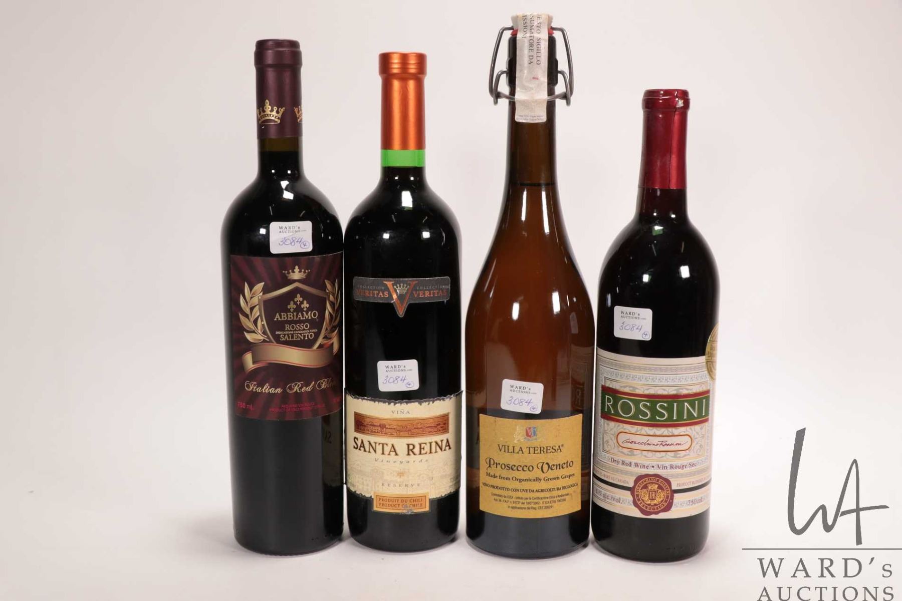 Veritas Santa Reina Vineyard/ Dry Red Wine/ 750ml/ 11.5% ABV, Villa Teresa/ Prosecco Veneto/ 750ml/ 11% ABV, Rossini/ Dry Red Wine/ 750ml/ 11% ABV and Rossini/ Dry Red Wine/ 750ml/ 11% ABV Note: Alcohol cannot be insured by any courier in Canada. Local pick up is recommended. Canadian bidders only