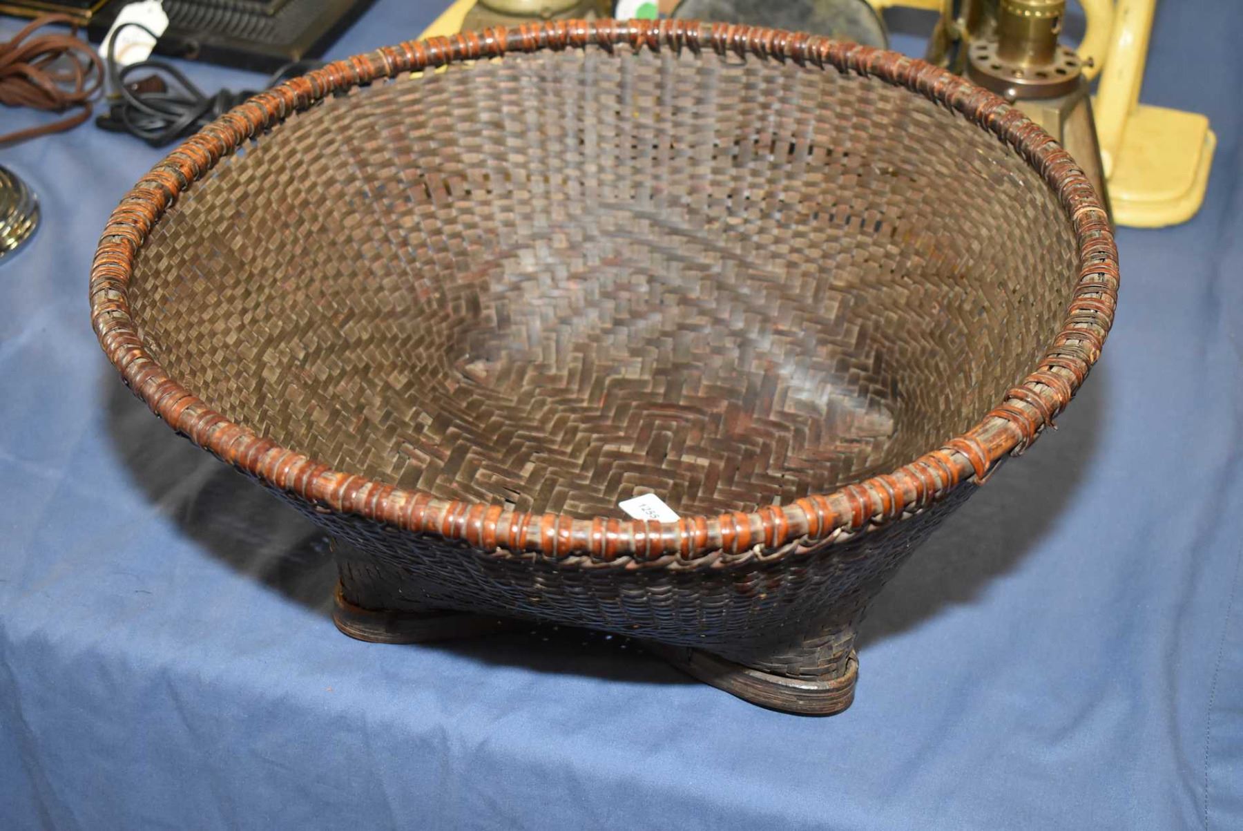 Victorian split bamboo and woven basket with flat base
