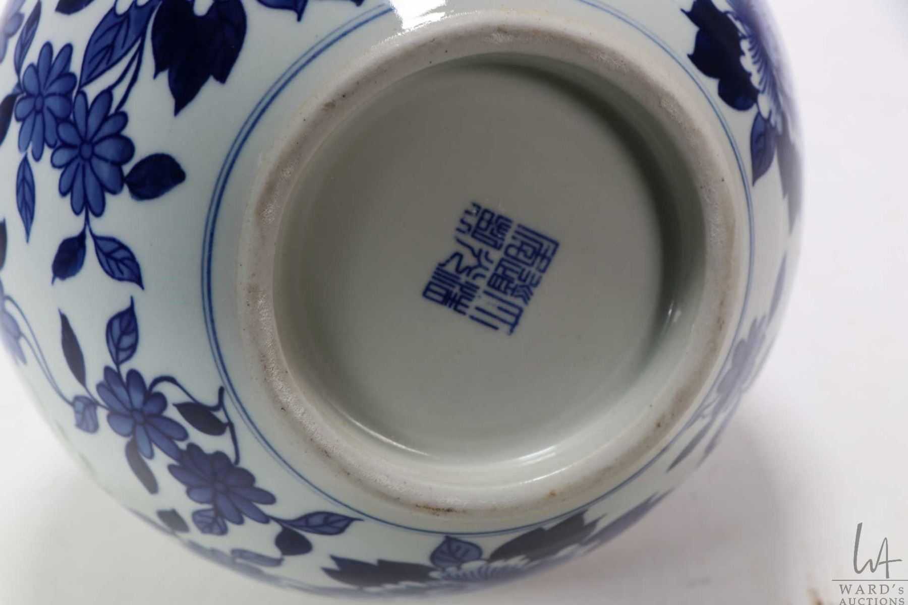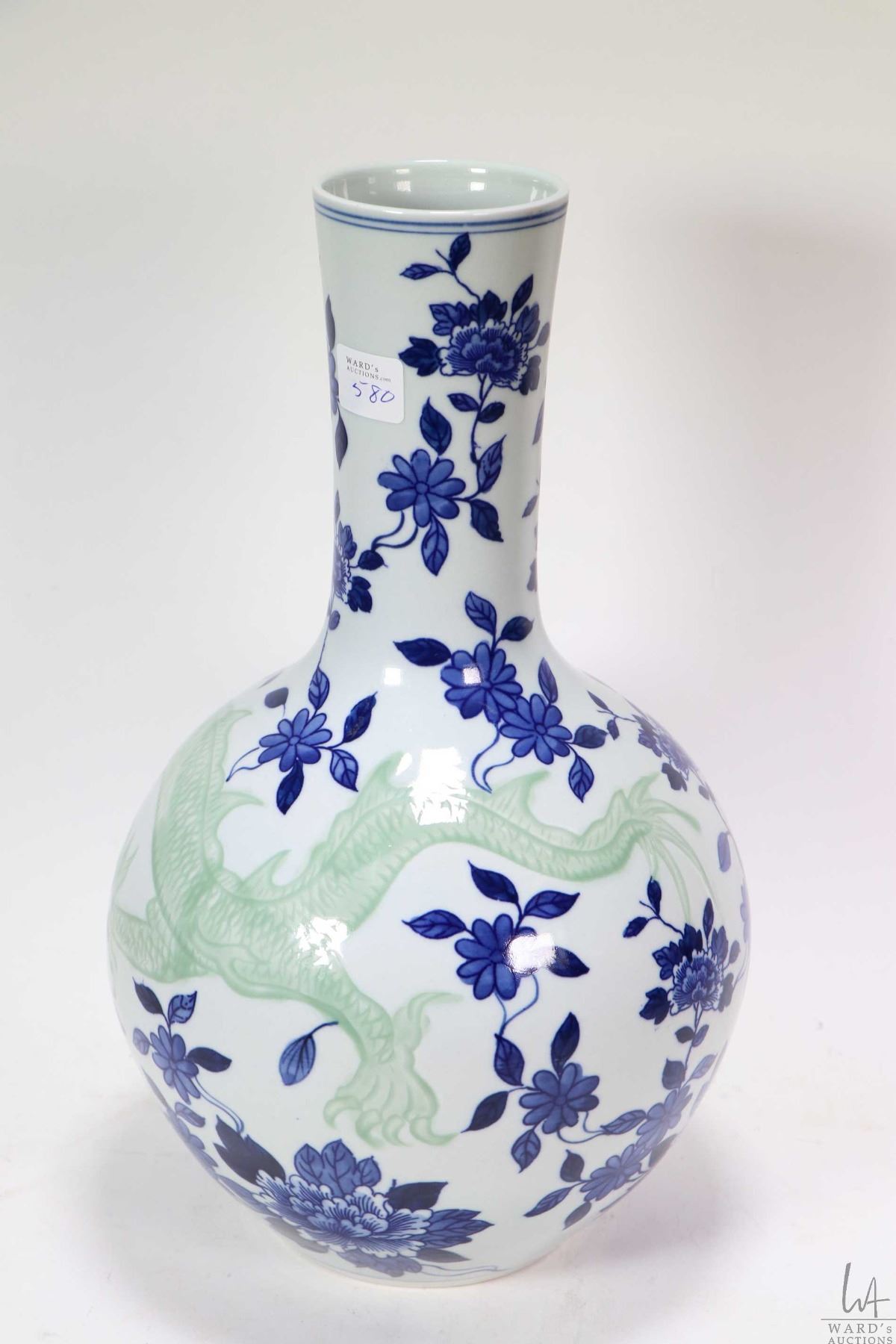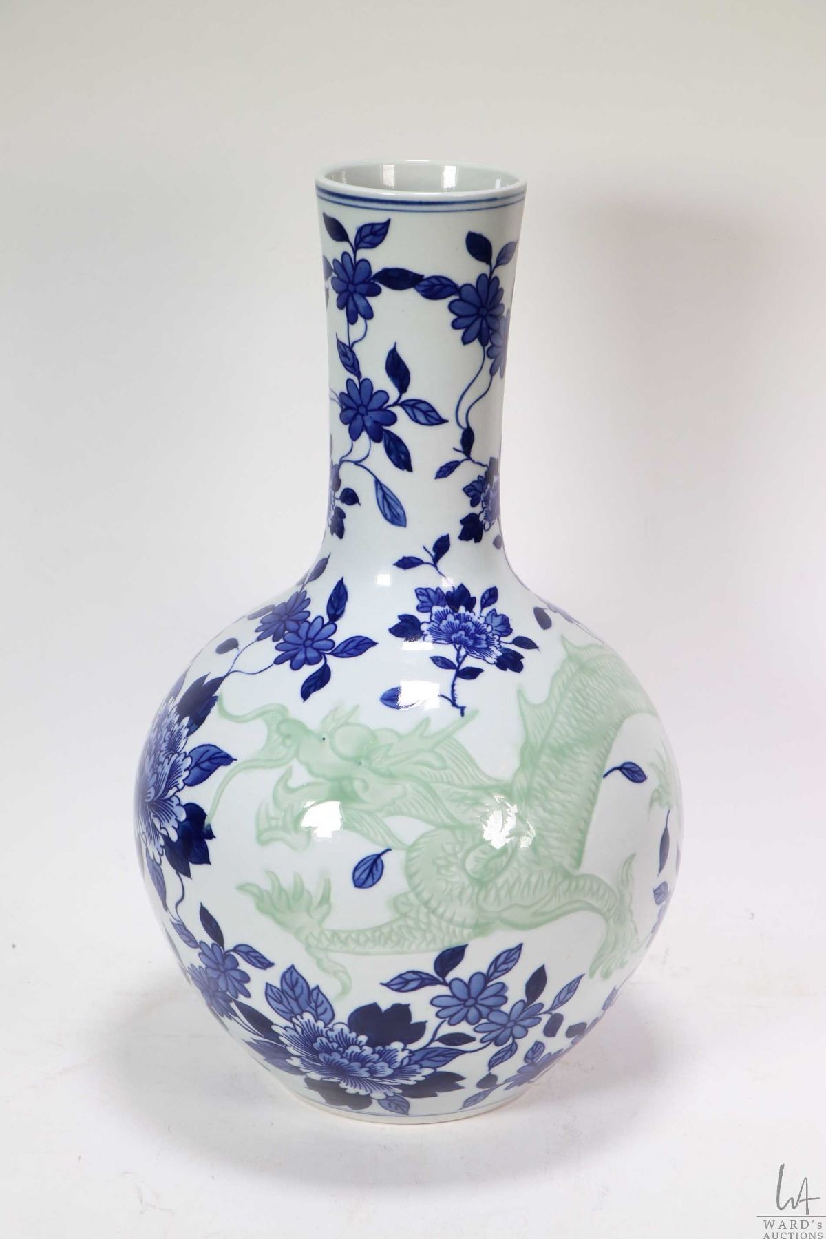 Vintage 13" Oriental vase with under glazed dragon and chrysanthemums design