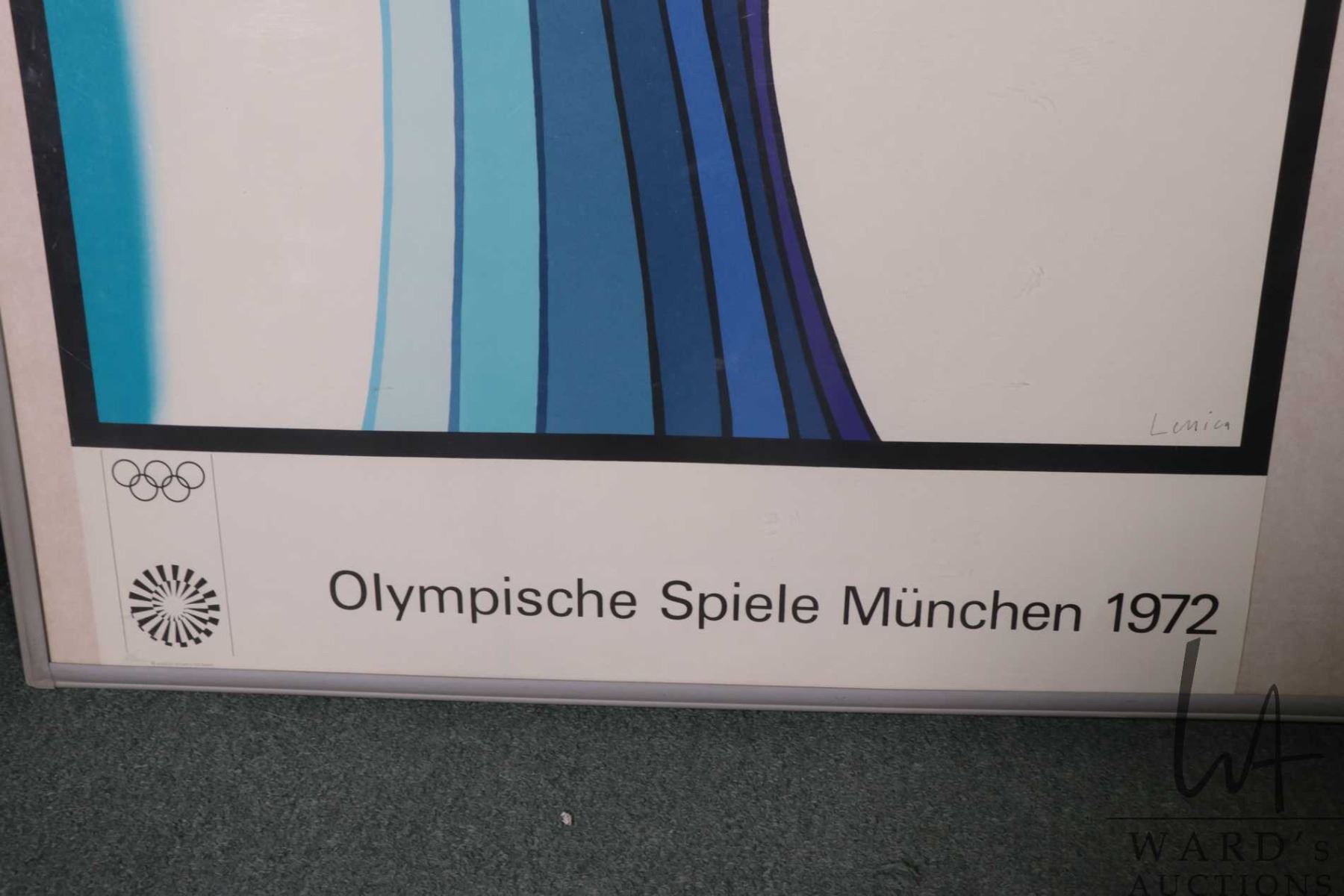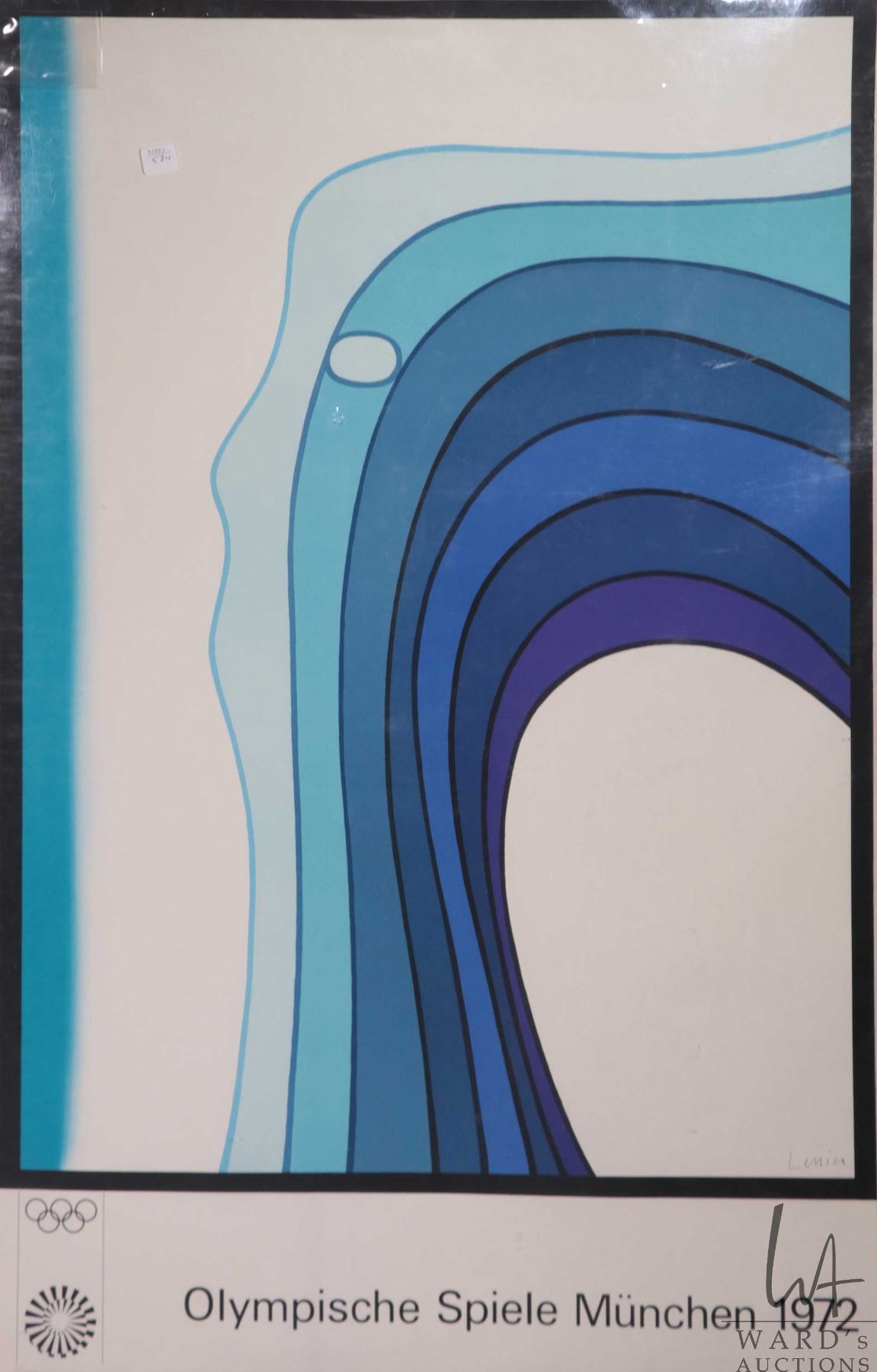 Vintage 1972 Munich Olympic Games Art Series poster by German graphic artist Jan Lenica, printed in Germany in 1972, 39 3/4" X 25 1/8" note: printed with signature