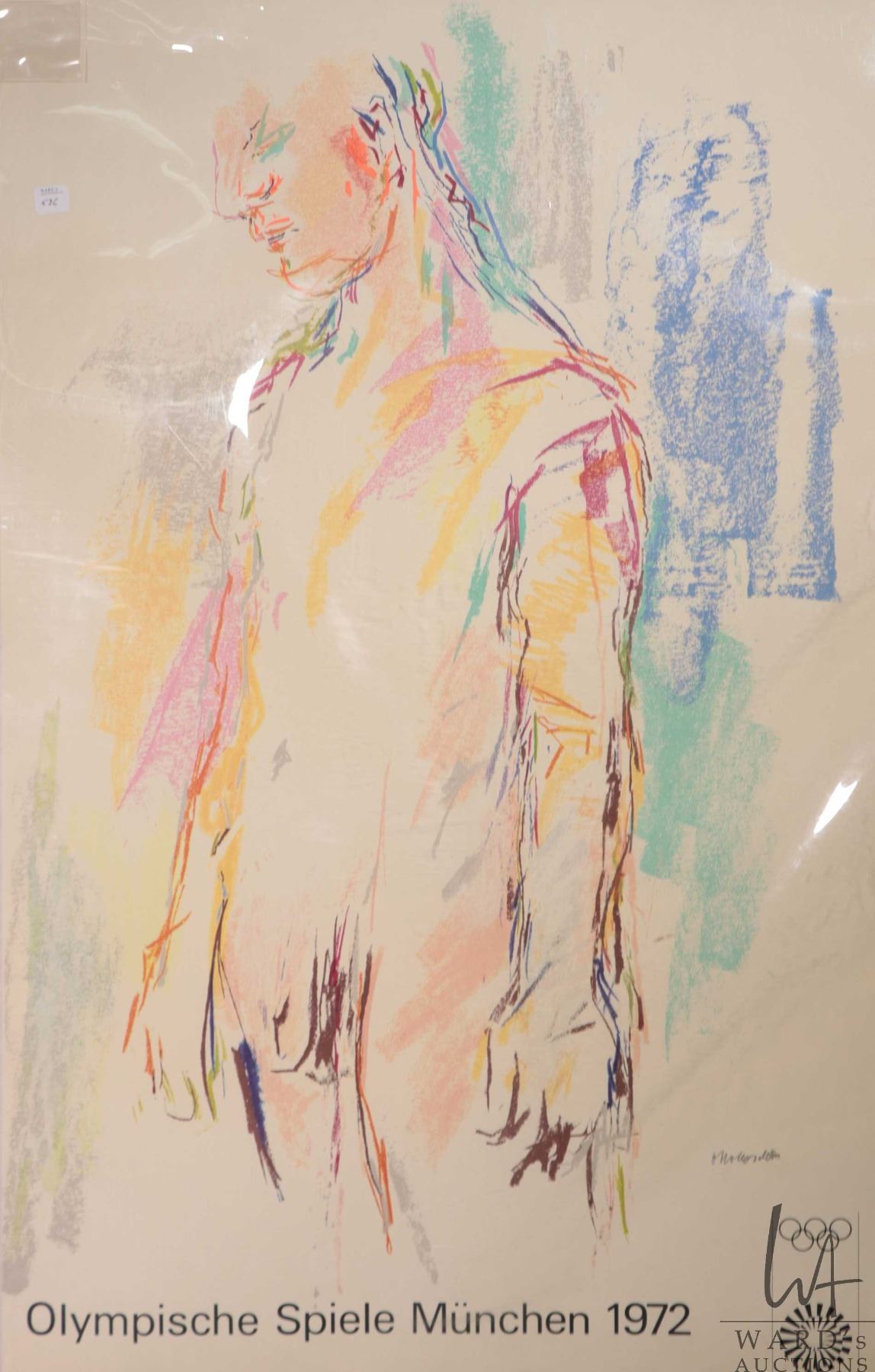 Vintage 1972 Munich Olympic Games Art Series poster by German graphic artist Oskar Kokoschka, printed in Germany in 1972, 39 3/4" X 25 1/8" note: printed with signature