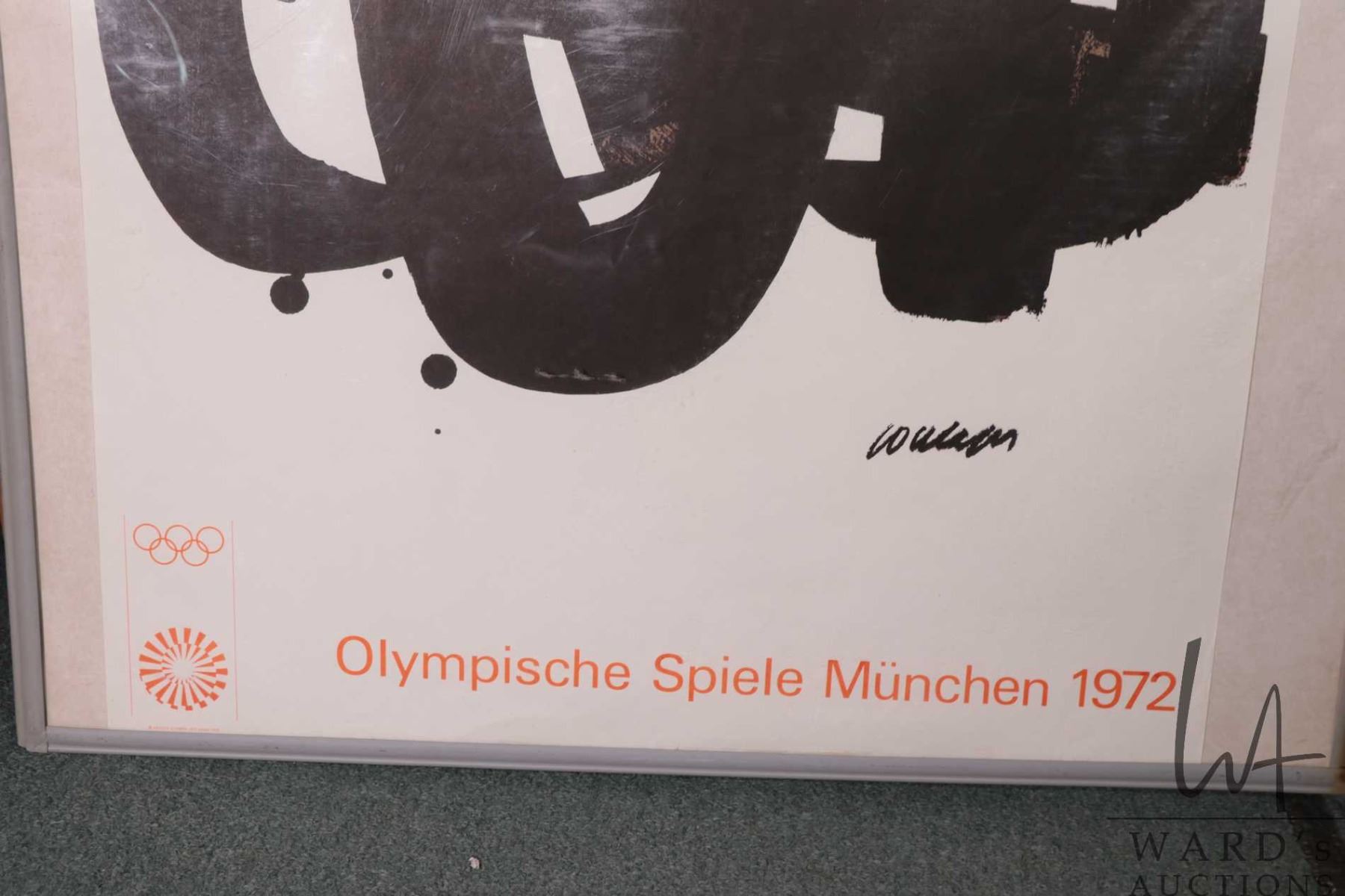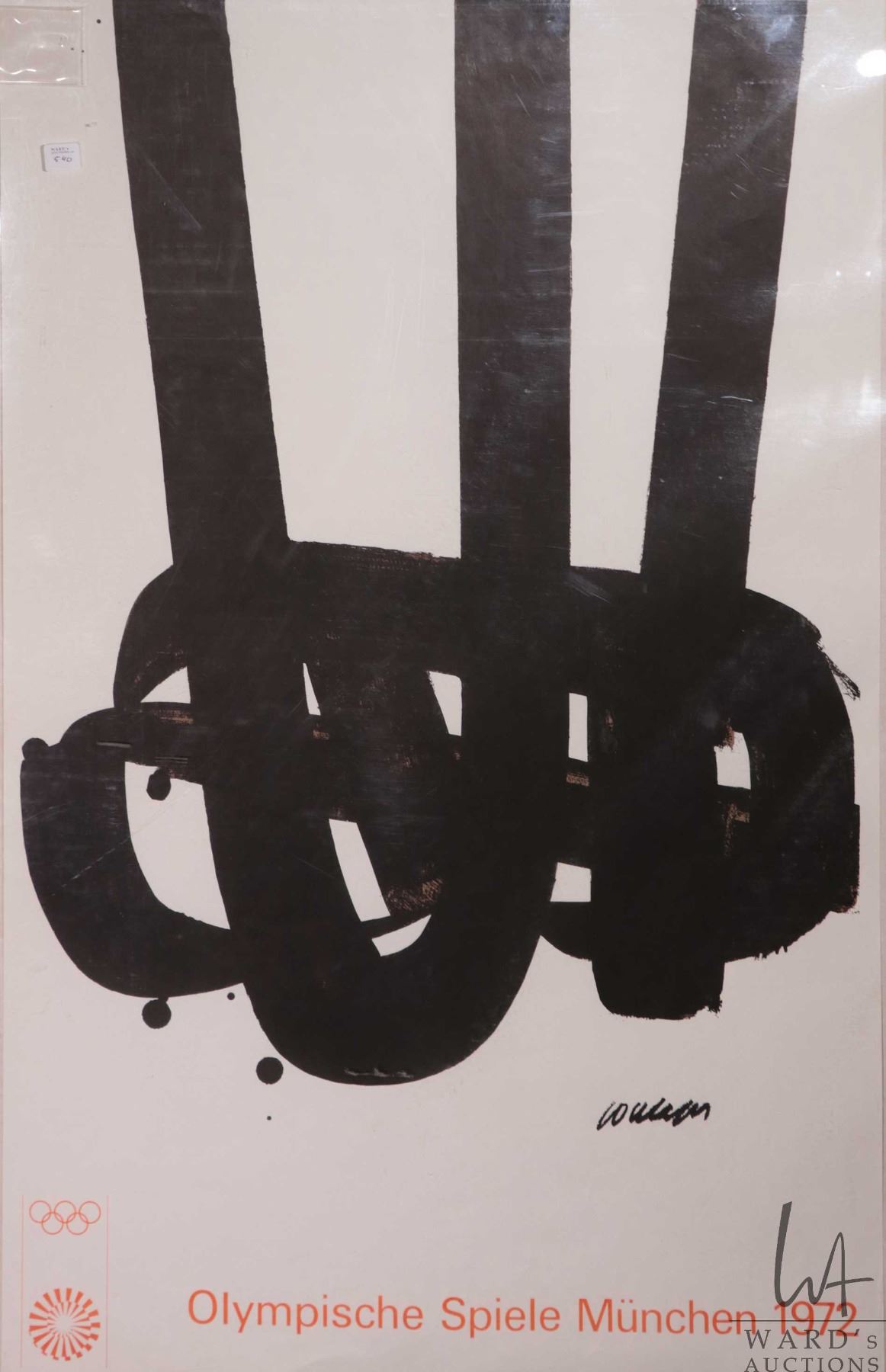 Vintage 1972 Munich Olympic Games Art Series poster by German graphic artist Pierre Soulages, printed in Germany in 1972, 39 3/4" X 25 1/8" note: printed with signature