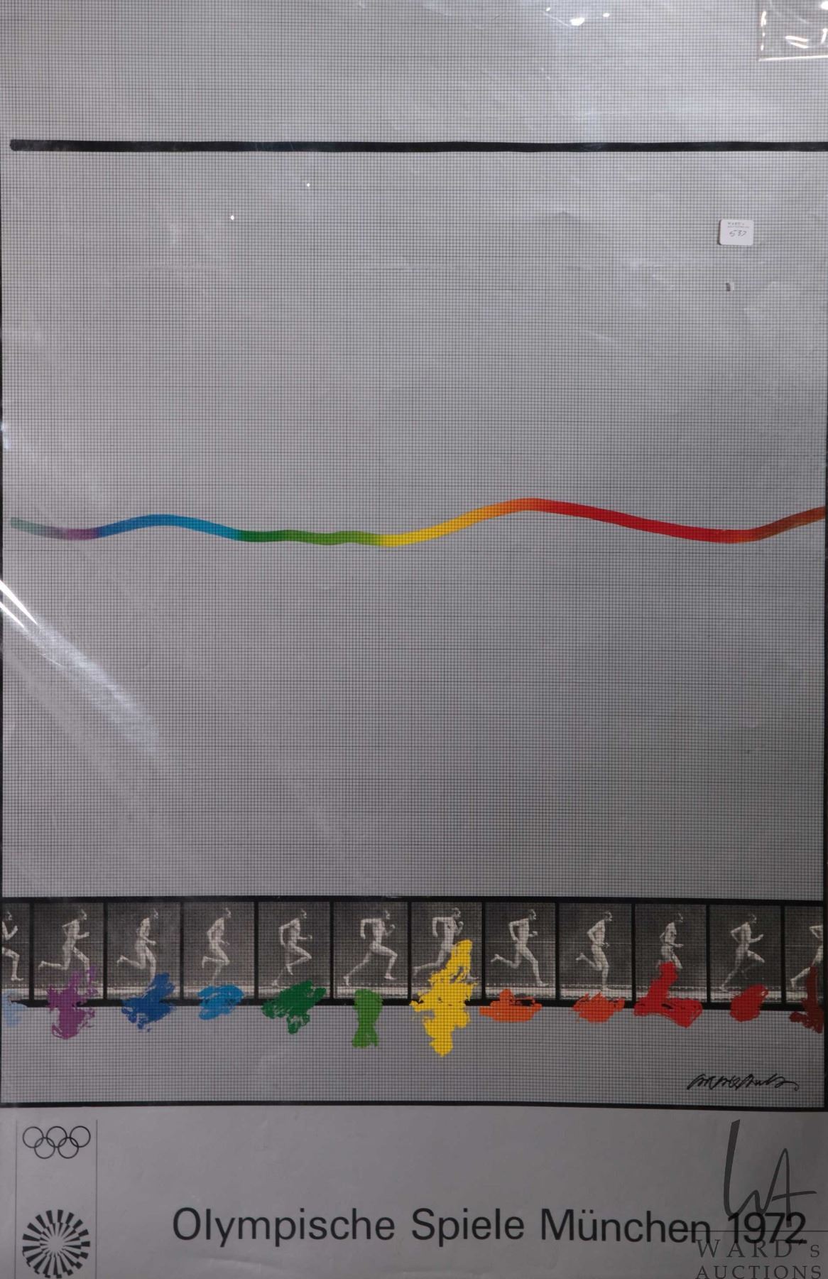 Vintage 1972 Munich Olympic Games Art Series poster by German graphic artist Shusaka Arakawa, printed in Germany in 1972, 39 3/4" X 25 1/8" note: printed with signature